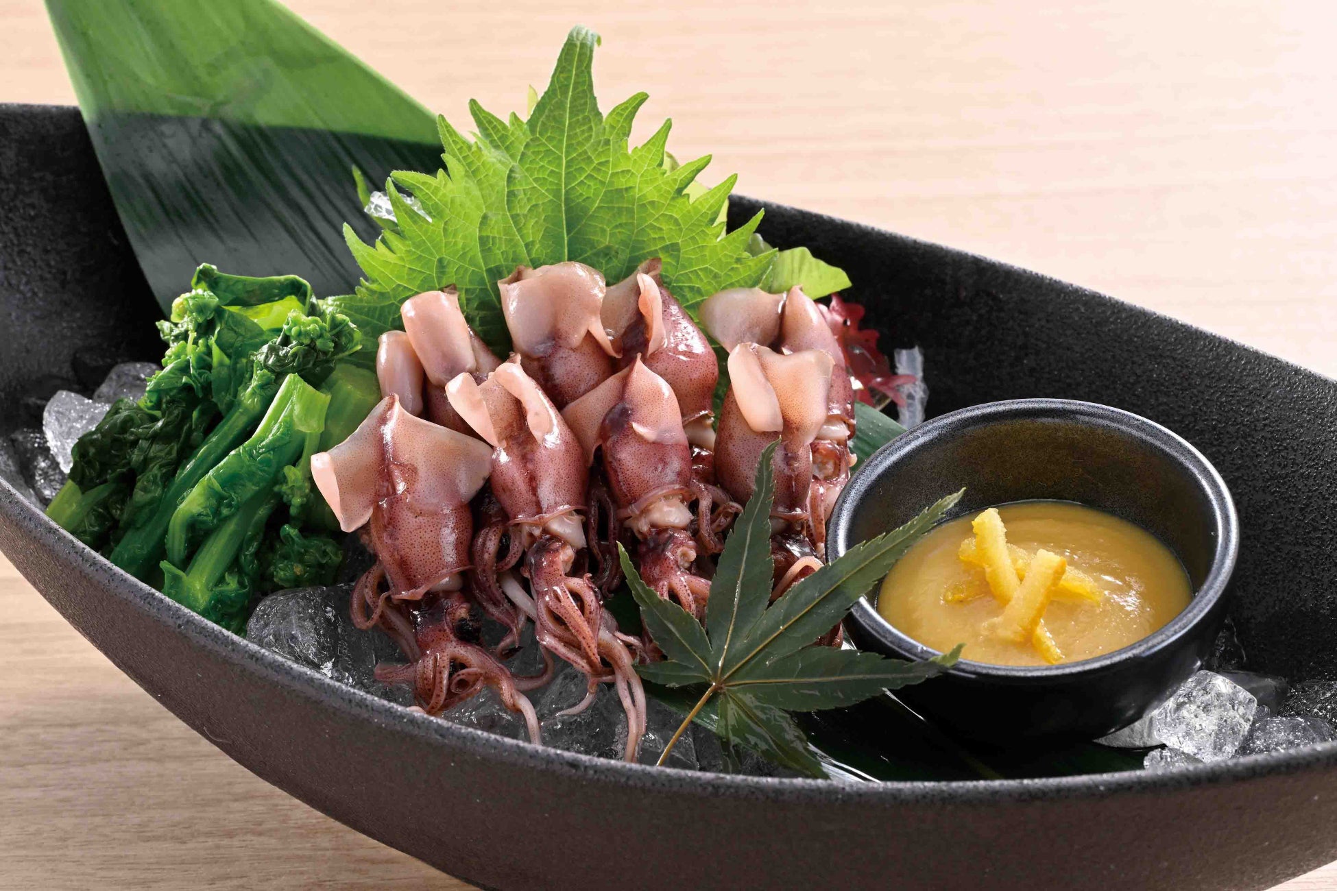 富山県産ほたるいかと菜の花のからし酢味噌添え