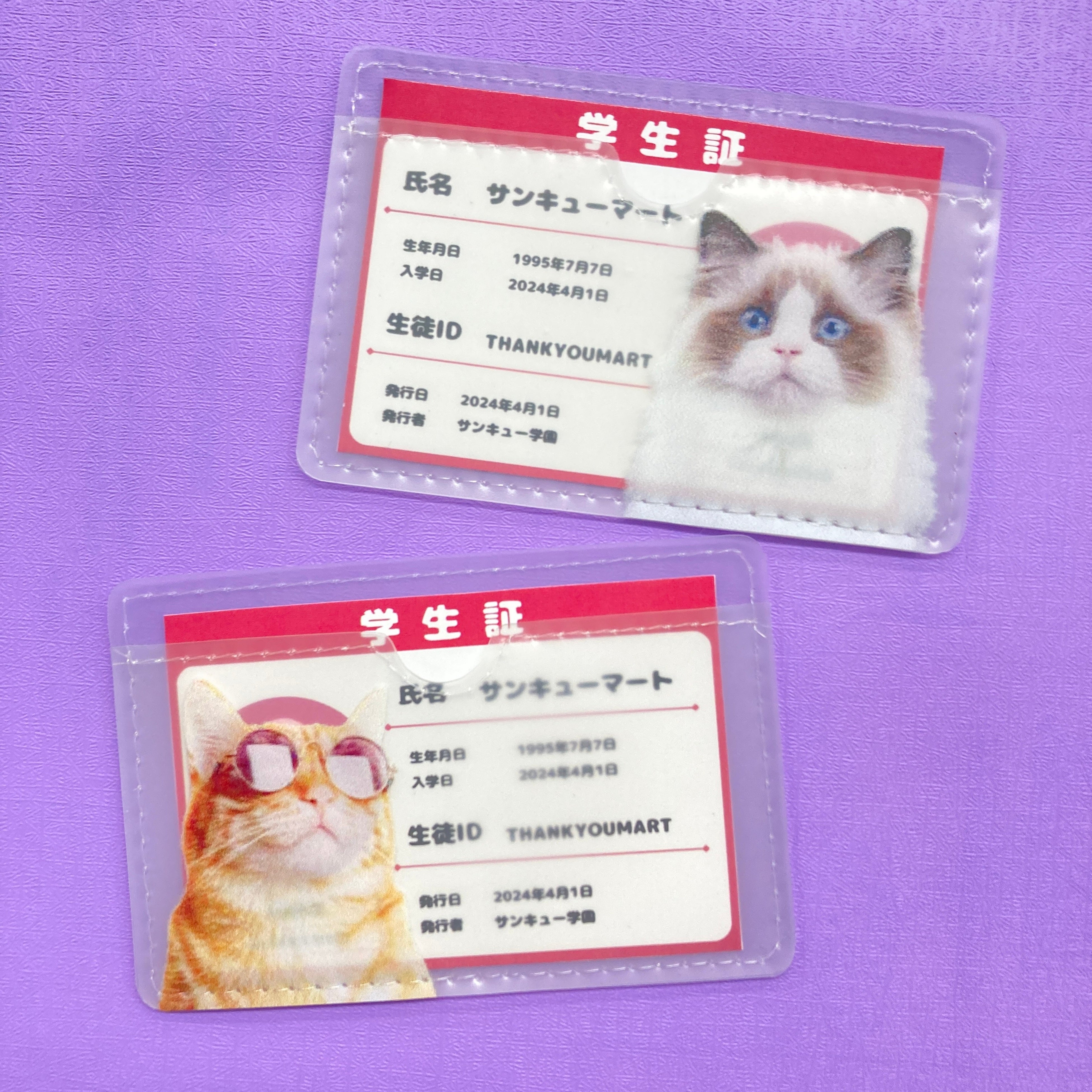 「顔隠し学生証ケース」はクリア素材の学生証ケースで、学生証の顔写真部分を隠せるようキュートなネコのプリントが入ったアイテムです。