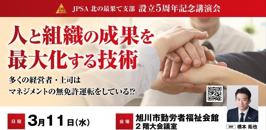 一般財団法人 日本プロスピーカー協会(JPSA、以下JPSAと記載)北の最果て支部は、2026年3月11日(水)旭川市勤労者福祉会館にて5周年記念特別講演会を開催します。