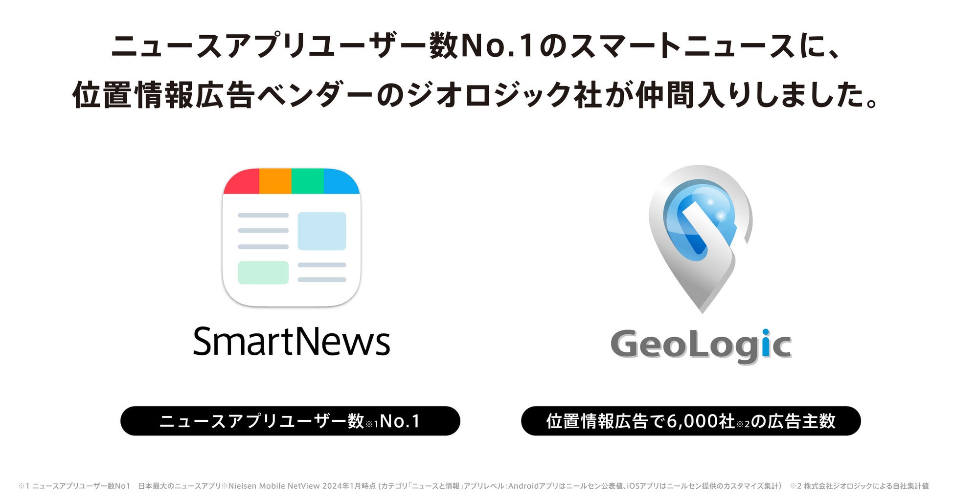 株式会社ジオロジックは、累計6000社を超える広告主に位置情報広告「GeoLogic Ad」を提供しています。「いちから作ろう スマートな世界を。」をスローガンに、店舗・地域のデジタルマーケティングを総合的に支援する企業です。2021年10月にスマートニュース株式会社の100%子会社になりました。