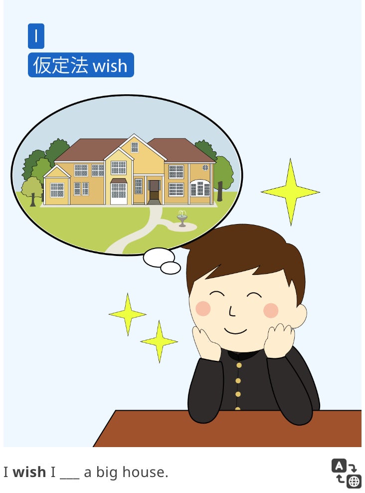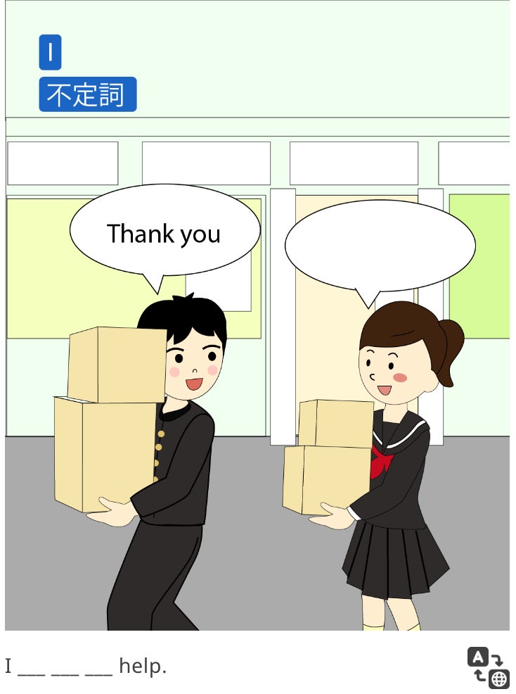 レッスンではカードを使用し、中学校の授業で学んだ英文法を視覚的に定着させます。また、日常会話でも使えるように、瞬発力を鍛えるためのアクティビティも用意しています。