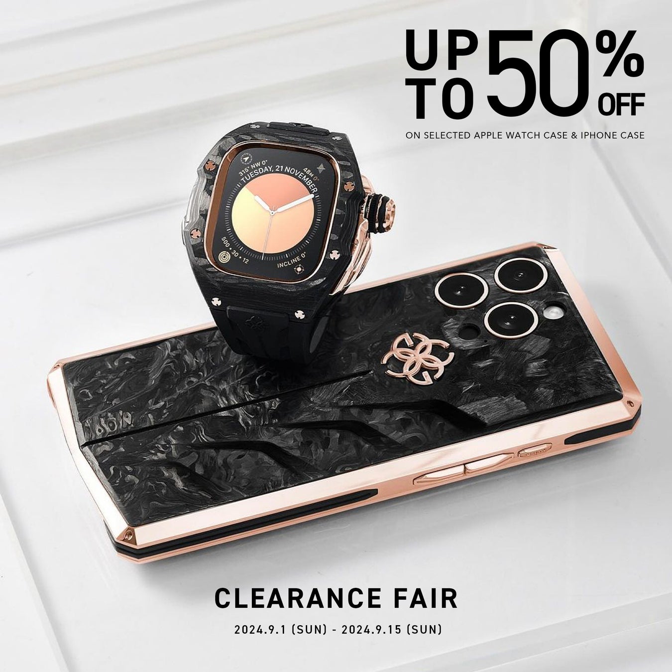 ゴールデンコンセプト日本公式サイトにて、アップルウォッチケース 41/45 MM & アイフォンケースの対象商品を最大50%OFFの特別価格にてご提供いたします。