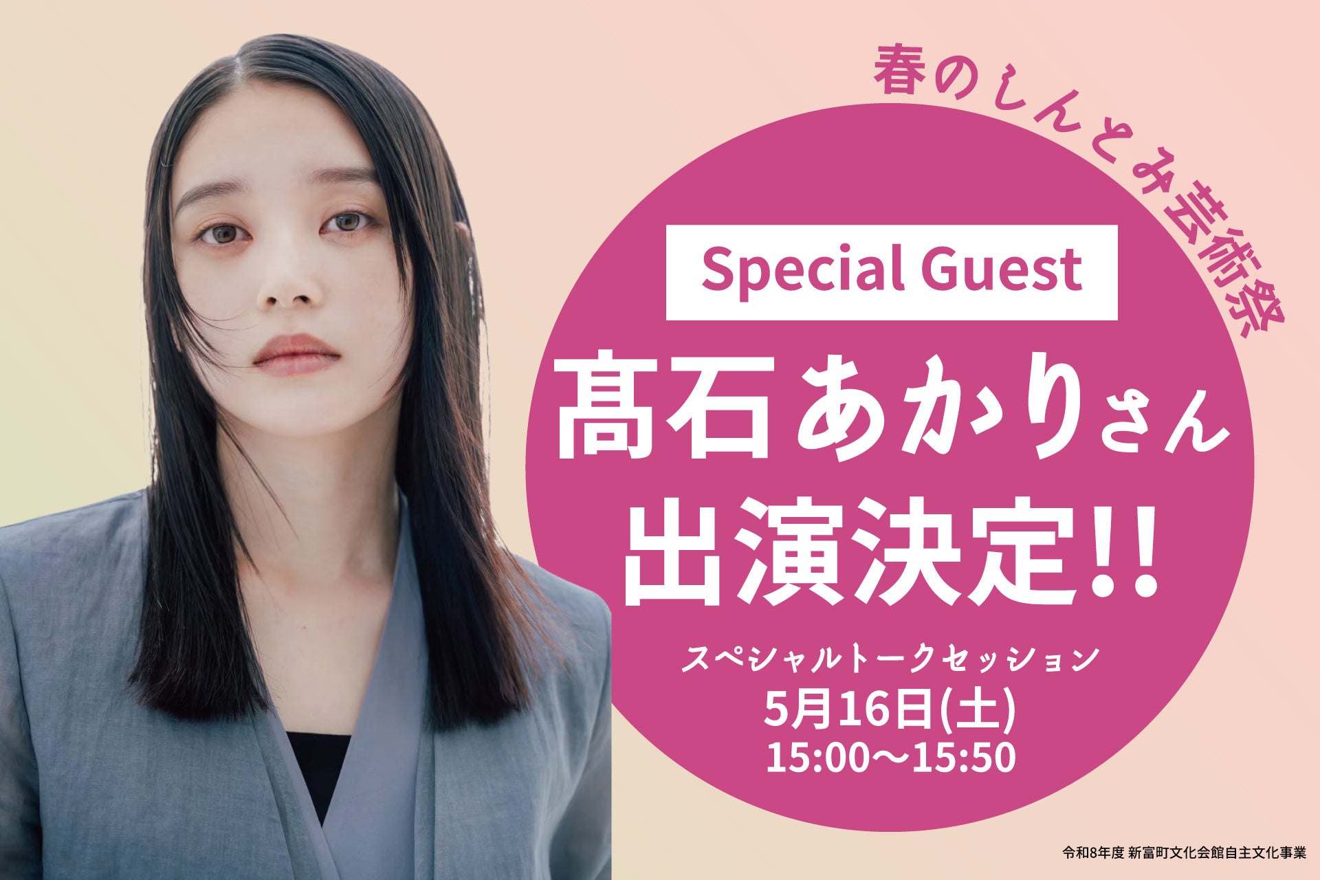 一般財団法人こゆ地域づくり推進機構(所在地:宮崎県児湯郡新富町、代表理事:岡本啓二、以下「こゆ財団」)は、2026年5月16日(土)に開催する「春のしんとみ芸術祭」に、宮崎県出身の俳優・髙石あかりさんがスペシャルゲストとして出演することが決定したことをお知らせします。