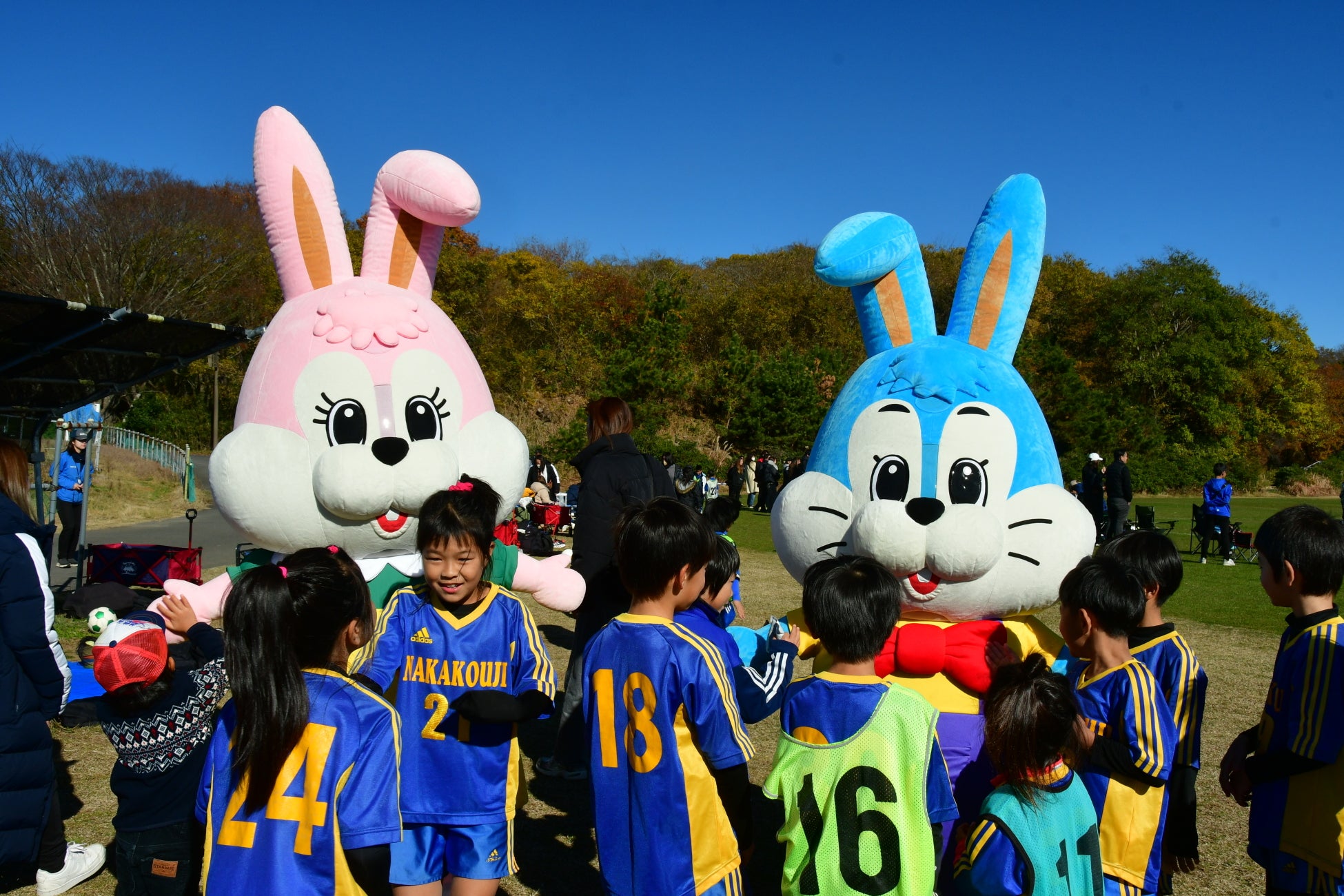 試合当日には、本公園のマスコットキャラクター「海(かい)くん」と「花(はな)ちゃん」も応援に駆け付けます。2人との触れ合いや、一緒に写真撮影をお楽しみいただけます。