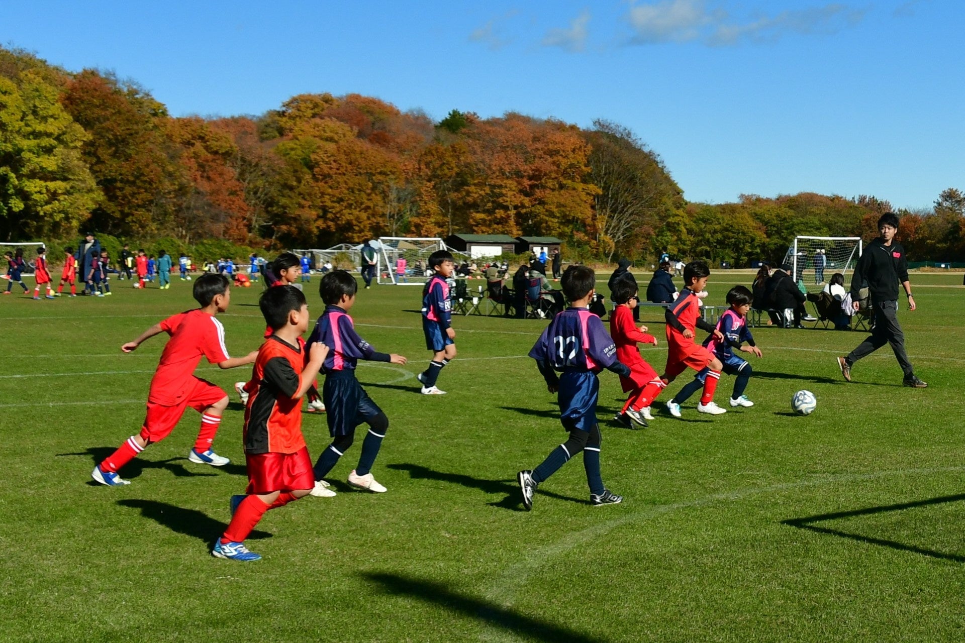 国営ひたち海浜公園の「多目的広場」では、11月29日(土)・30日(日)に、「海・花ちびっこサッカー大会U-9(アンダー ナイン)」を開催します。本大会はジュニアサッカーの普及や技術の向上、地域の枠を超えたサッカー少年団の相互交流を深めることを目的に、2000年から開催しています。日ごろ試合に出場する機会が少ない小学1年生から3年生が活躍し、目まぐるしく攻守が切り替わる熱戦が繰り広げられます。