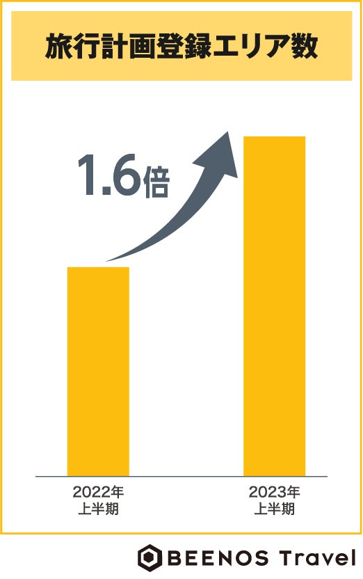 2020年~2022年までは、「あこがれ」や「いつか行ってみたい」「興味がある」といったような希望的旅程作成が中心だったのに対し、2023年1月~6月の旅行計画は「実際に訪問する」エリアの登録が増加したことの影響だと考えられます。
