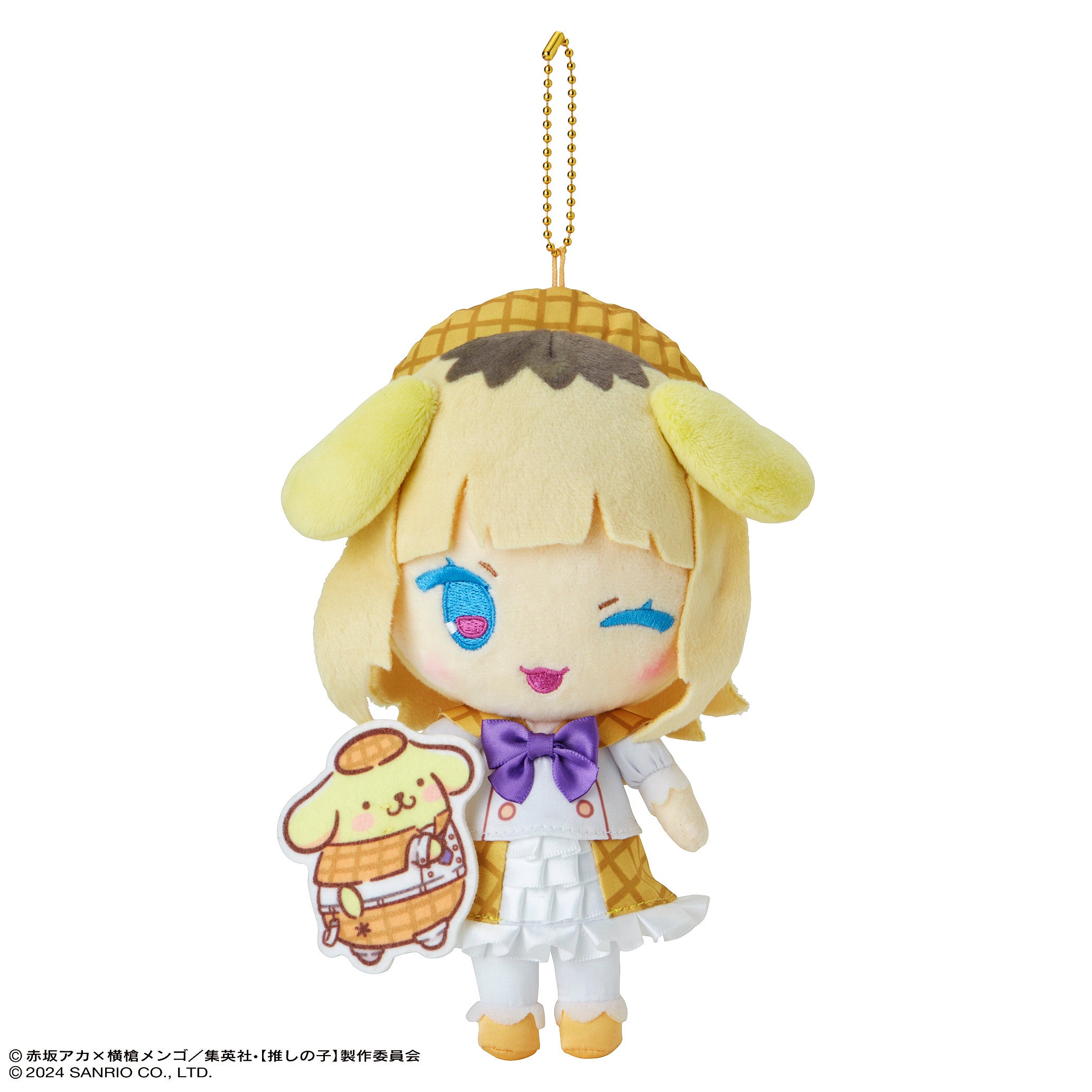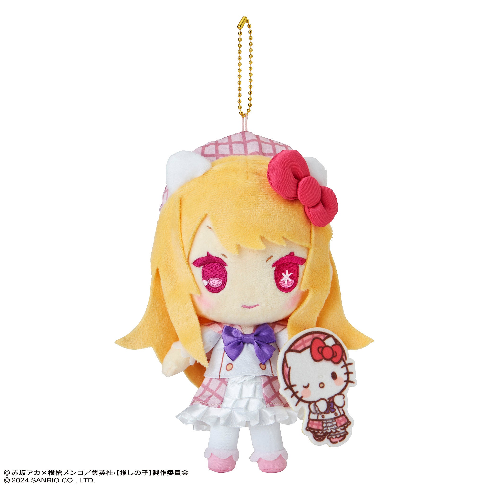 【推しの子】のキャラクターが、サンリオのキャラクターとお揃いのステージ衣装を身につけたマスコットホルダーです。