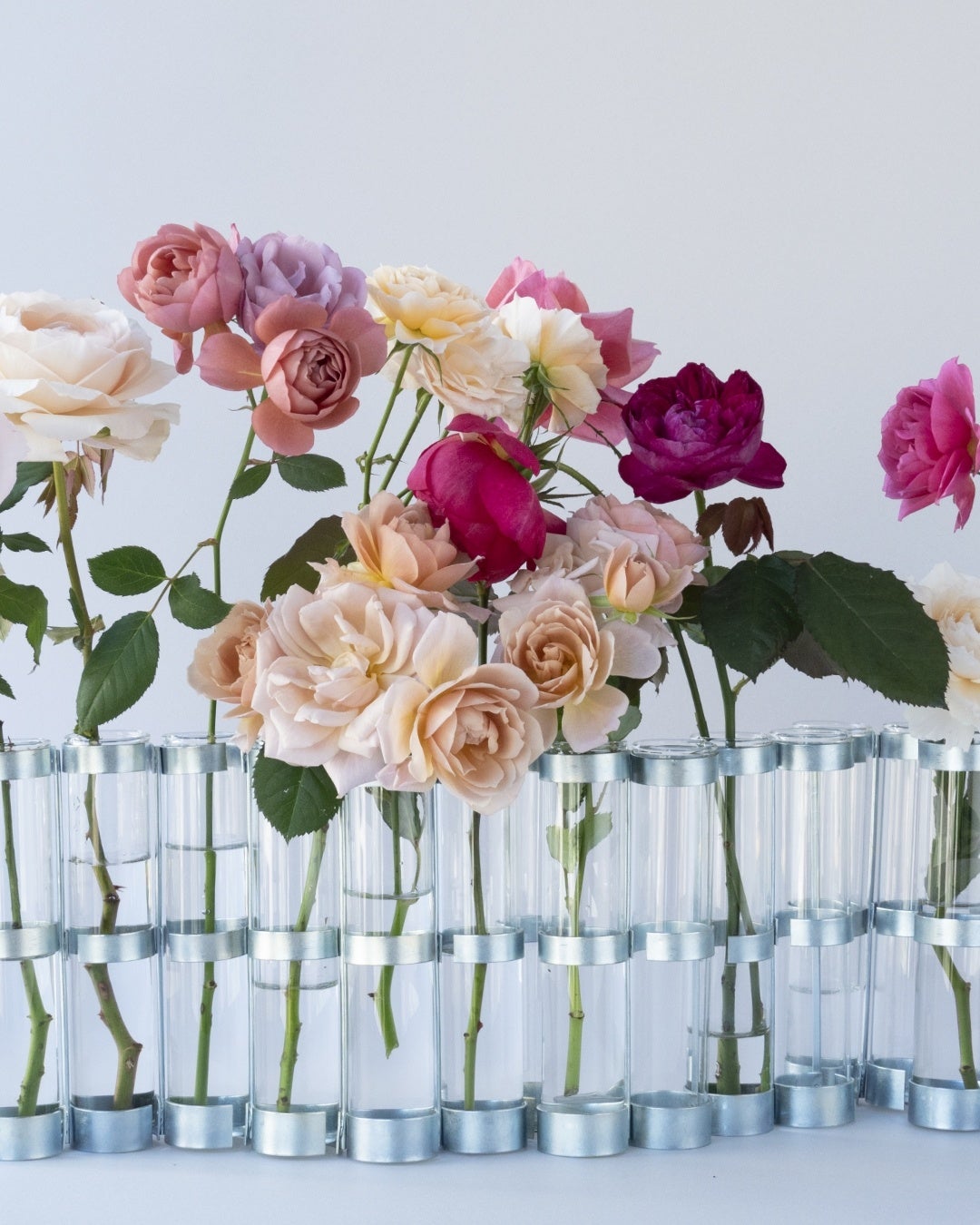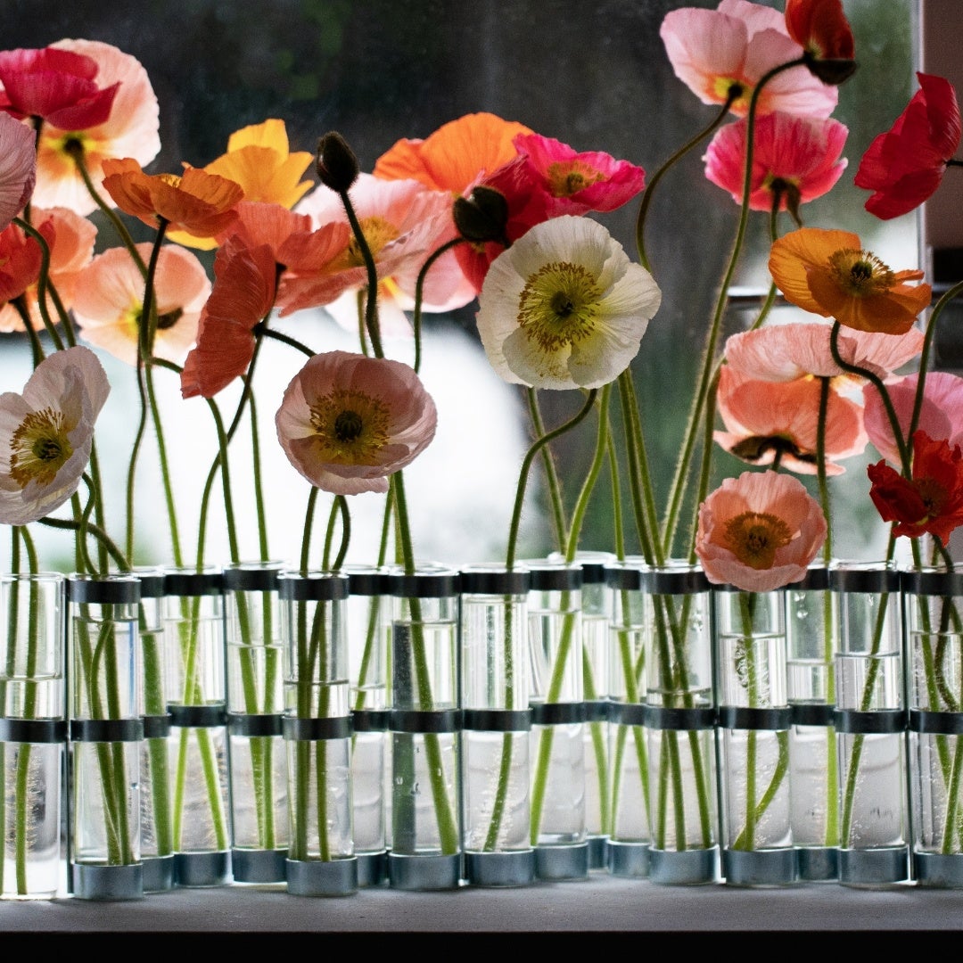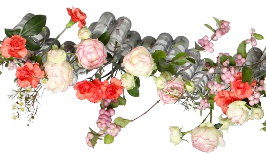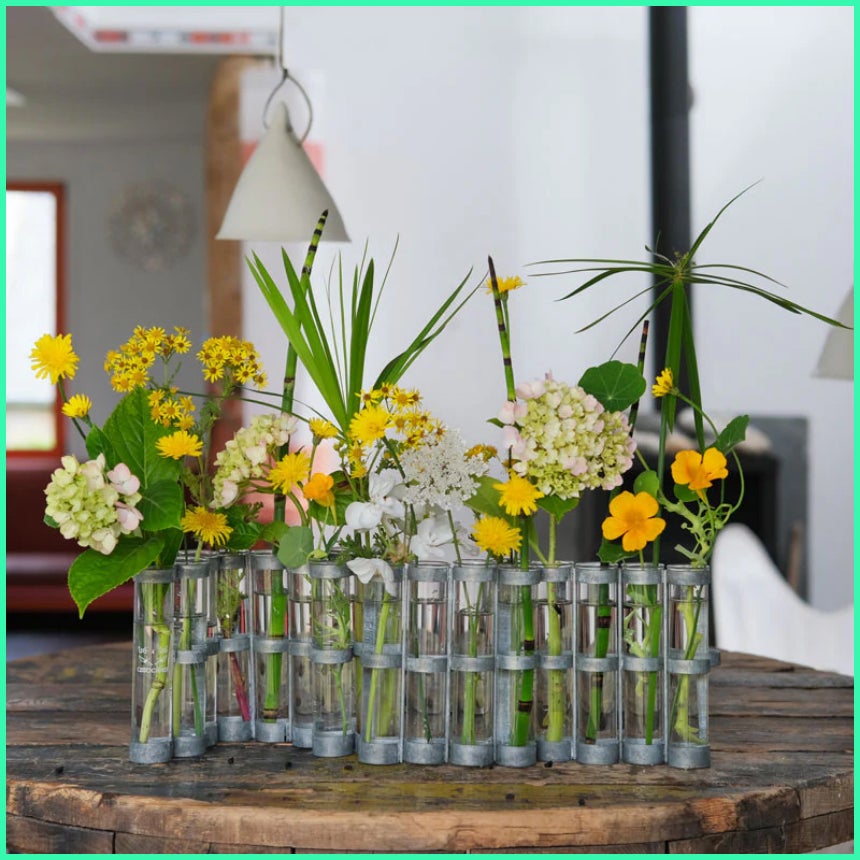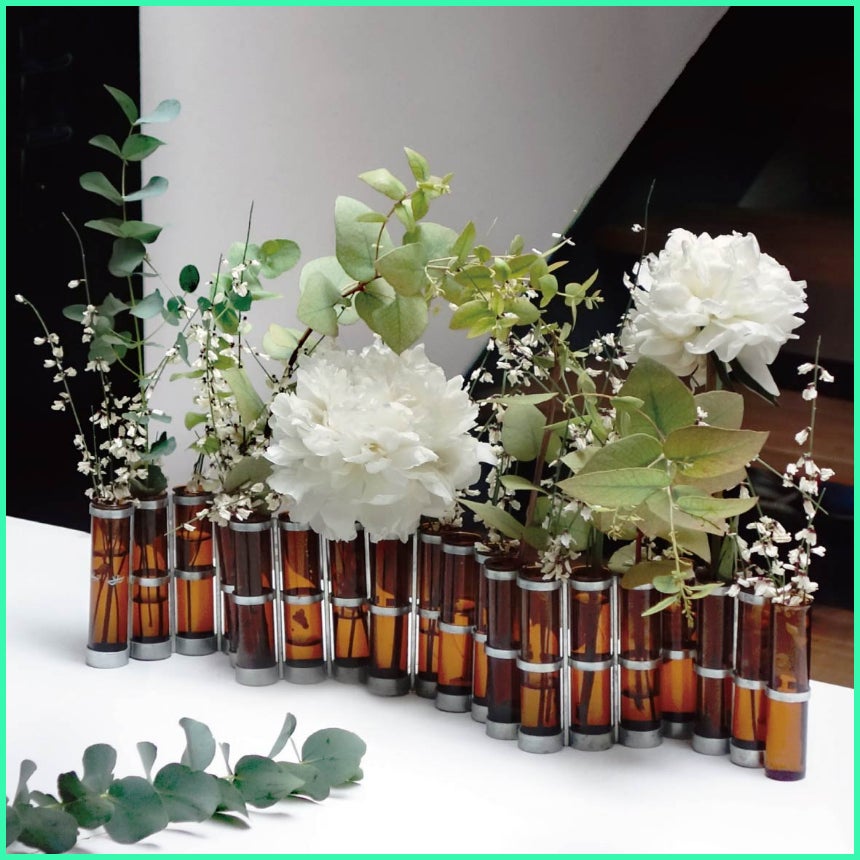 12〜21本の花瓶が連結されていて、個性的な形をつくります。花が自然そのものであったことを忘れないのです。