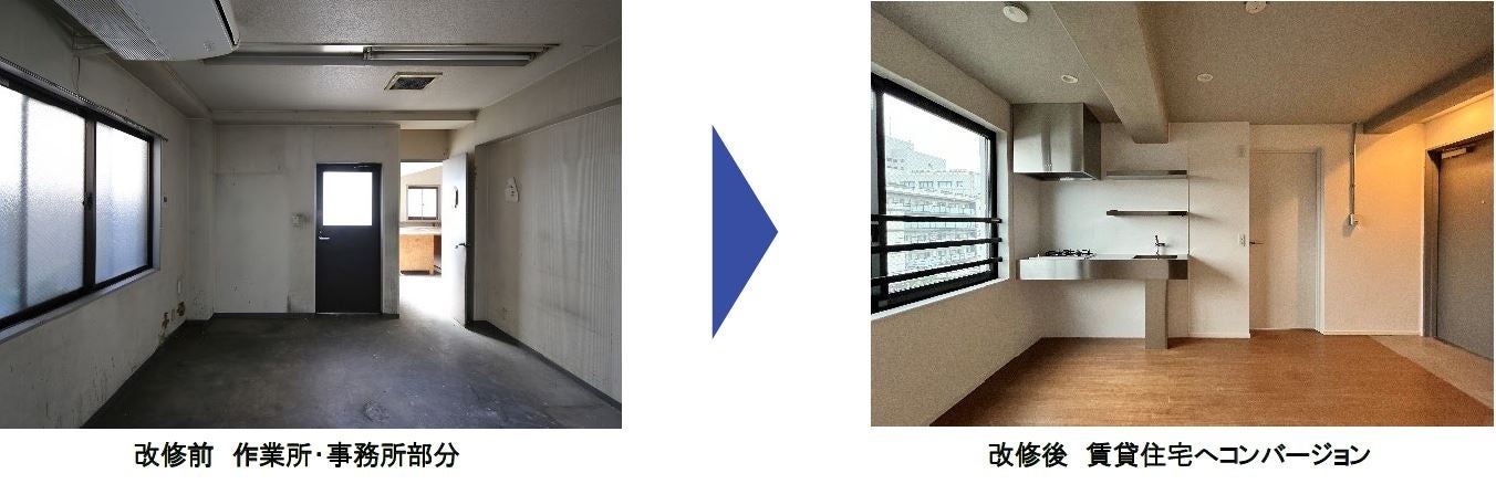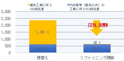 今般、リファイニング建築®を活用した同サービスとして初となる建物一棟のコンバージョンを実施することで、安定した収益を生み出す賃貸住宅への再生を可能としました。また、リファイニング建築®の特徴である既存躯体の補修および補強を施し既存建物の80%以上を再利用することで、建替えと比較して工事費を低減することが可能になります。また、事業性能の向上を図るとともに、建替えと比較してCO2を70%以上削減できることが判明しております。