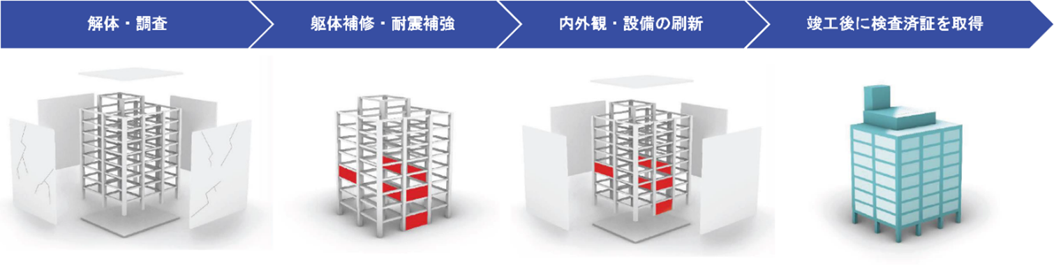 本事業は、旧耐震基準の建物を中心とした老朽化不動産のオーナーに対して、単に建築的な再生を図るだけでなく、三井不動産グループの連携により、不動産に関する課題解決のコンサルティング、商品企画、賃貸管理運営等、事業的な再生までサポートし、老朽化不動産の抱える様々な課題を解決します。