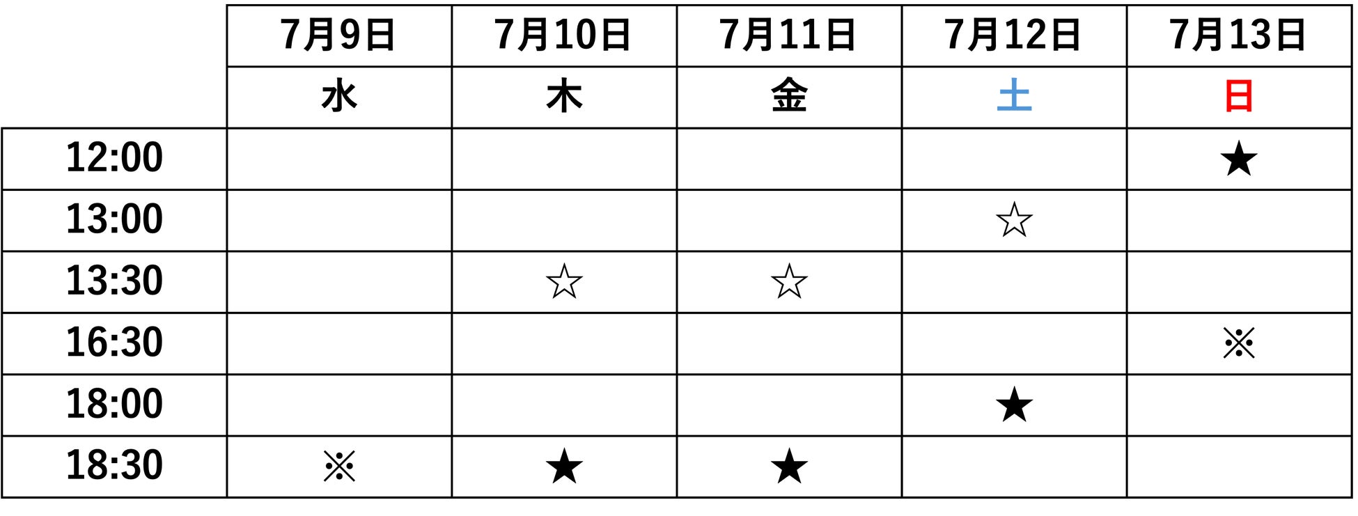 2025年7月9日(水)〜7月13日(日)※全9公演