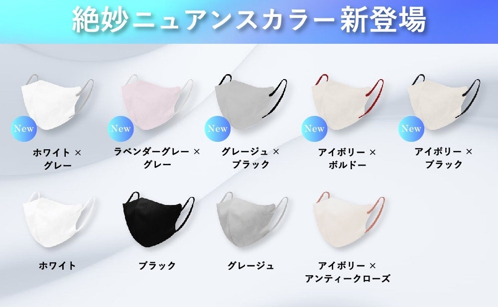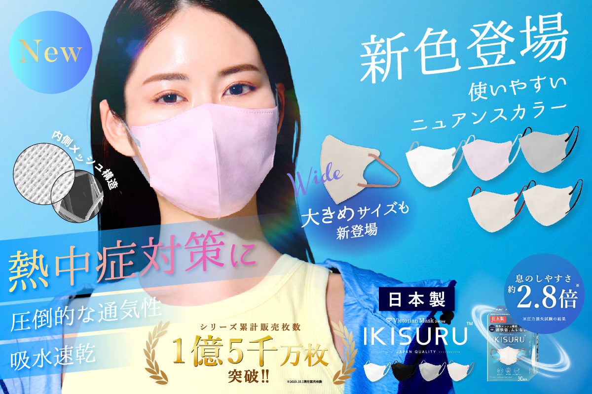 【新発売】熱中症対策におすすめ!特殊メッシュ素材の”風を感じる”通気性3Dマスク「IKISURU」から、新ニュアンスカラー5色&ゆったり使える大きめサイズが新登場!
