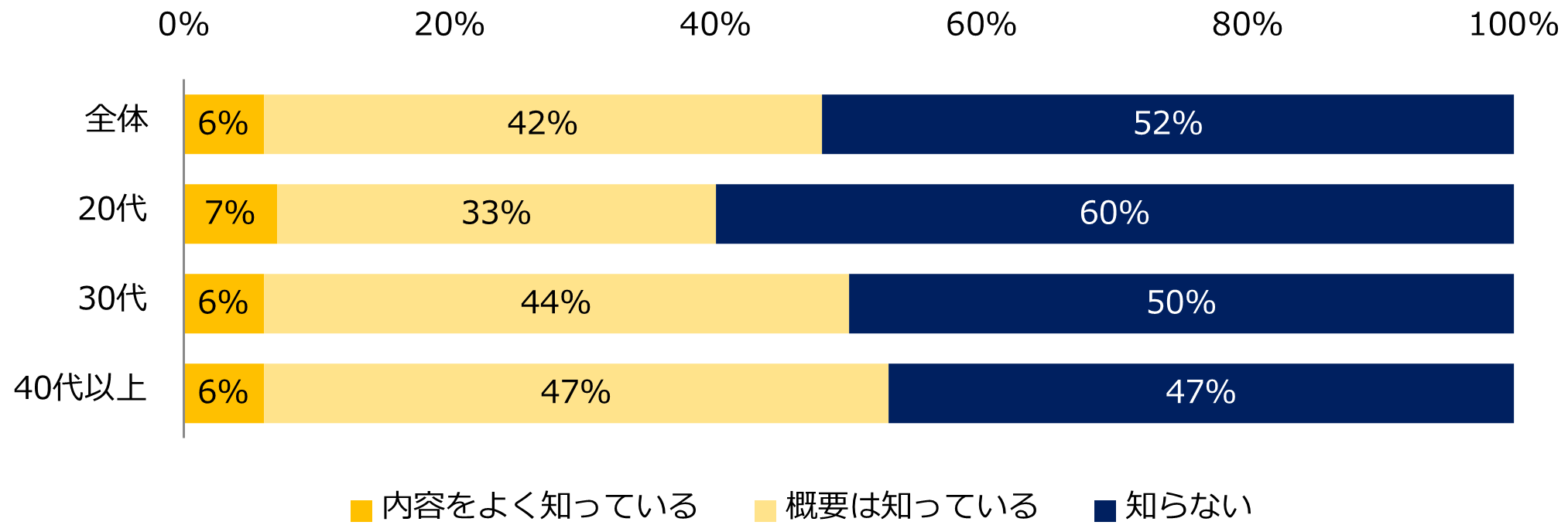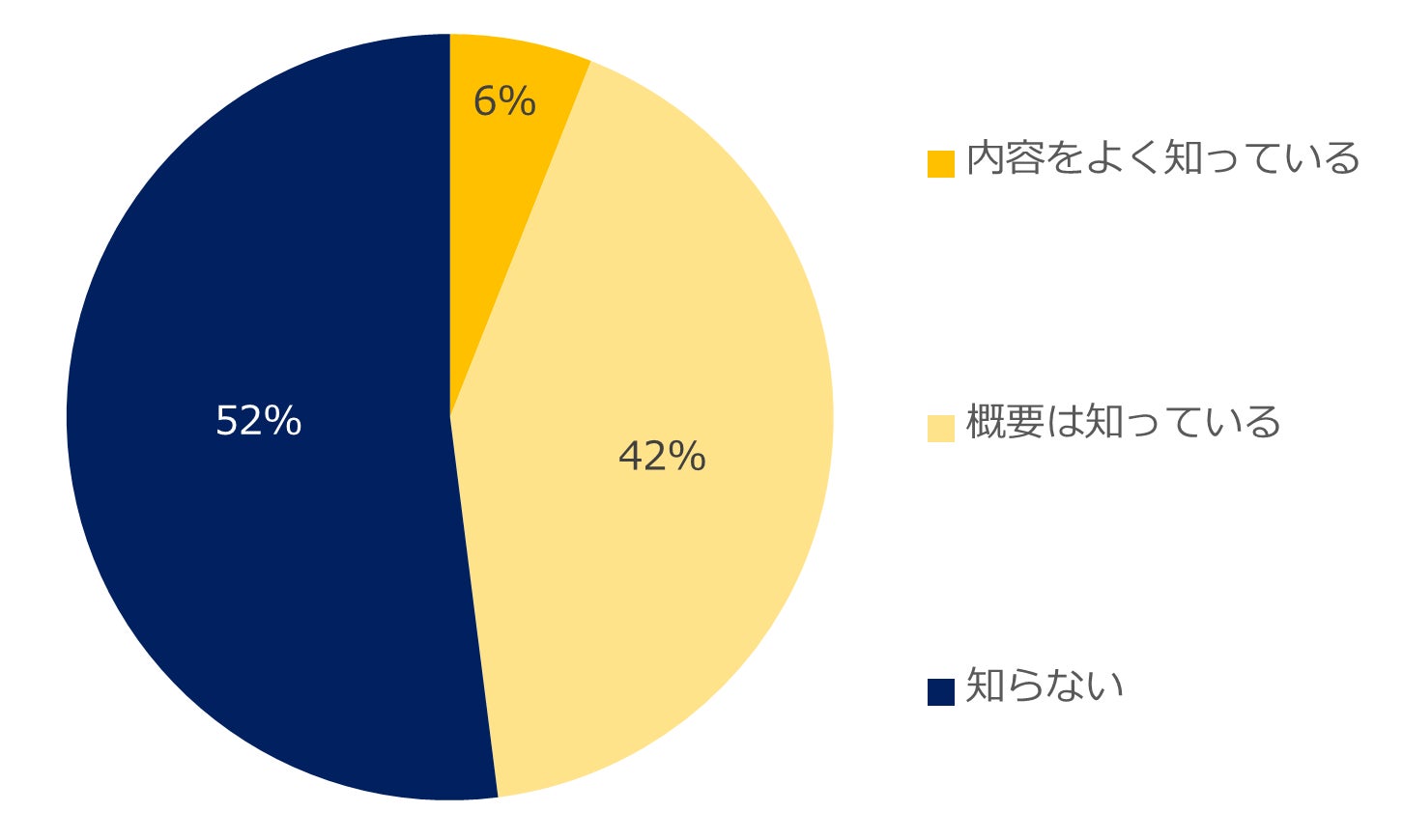 「給与を『〇〇ペイ』などデジタルマネーで受け取ることができる『デジタル給与』が、来年から解禁される見込みですが、内容をご存知ですか? 」と伺うと、「知っている」と回答した方は48%(内容をよく知っている:6%、概要は知っている:42%)、「知らない」と回答した方は52%でした。