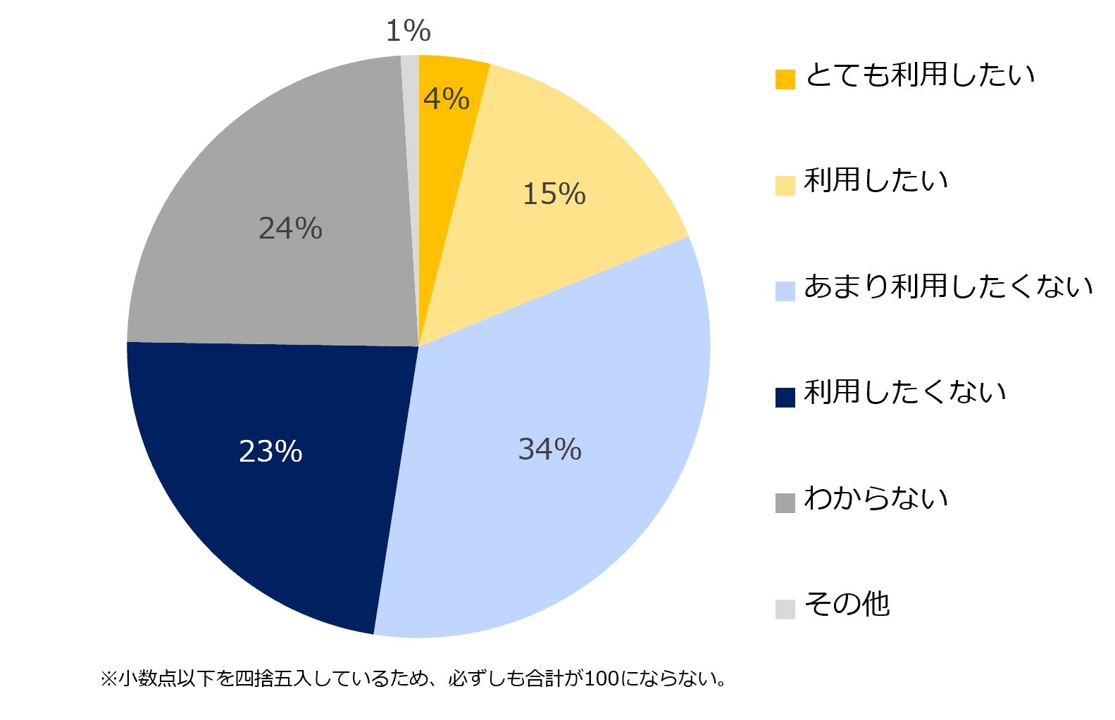 「給与口座から『〇〇ペイ』へのチャージが不要になったり、手数料が減るなどメリットがある『デジタル給与』が解禁された場合、利用したいですか? 」と伺うと、「利用したい」と回答した人は19%(とても利用したい:4%、利用したい:15%)にとどまる結果となりました。
