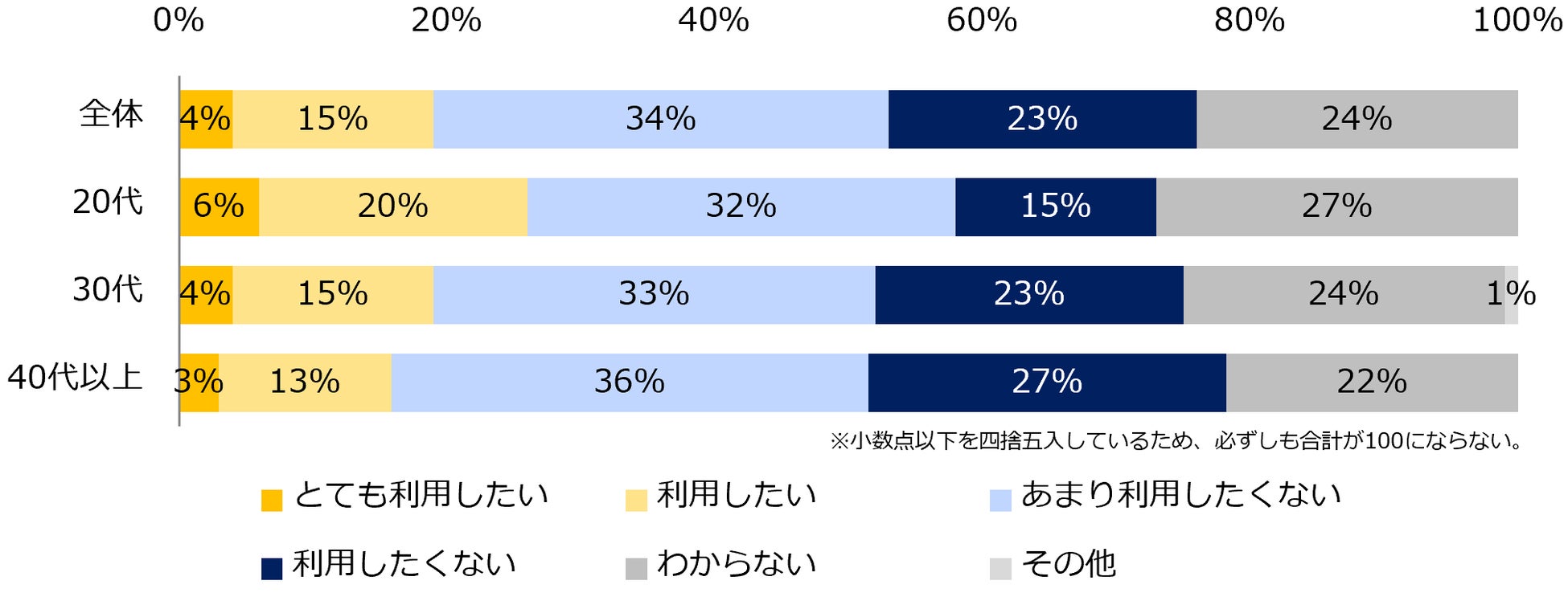 【図4】給与口座から『〇〇ペイ』へのチャージが不要になったり、手数料が減るなどメリットがある「デジタル給与」が解禁された場合、利用したいですか?(年代別)