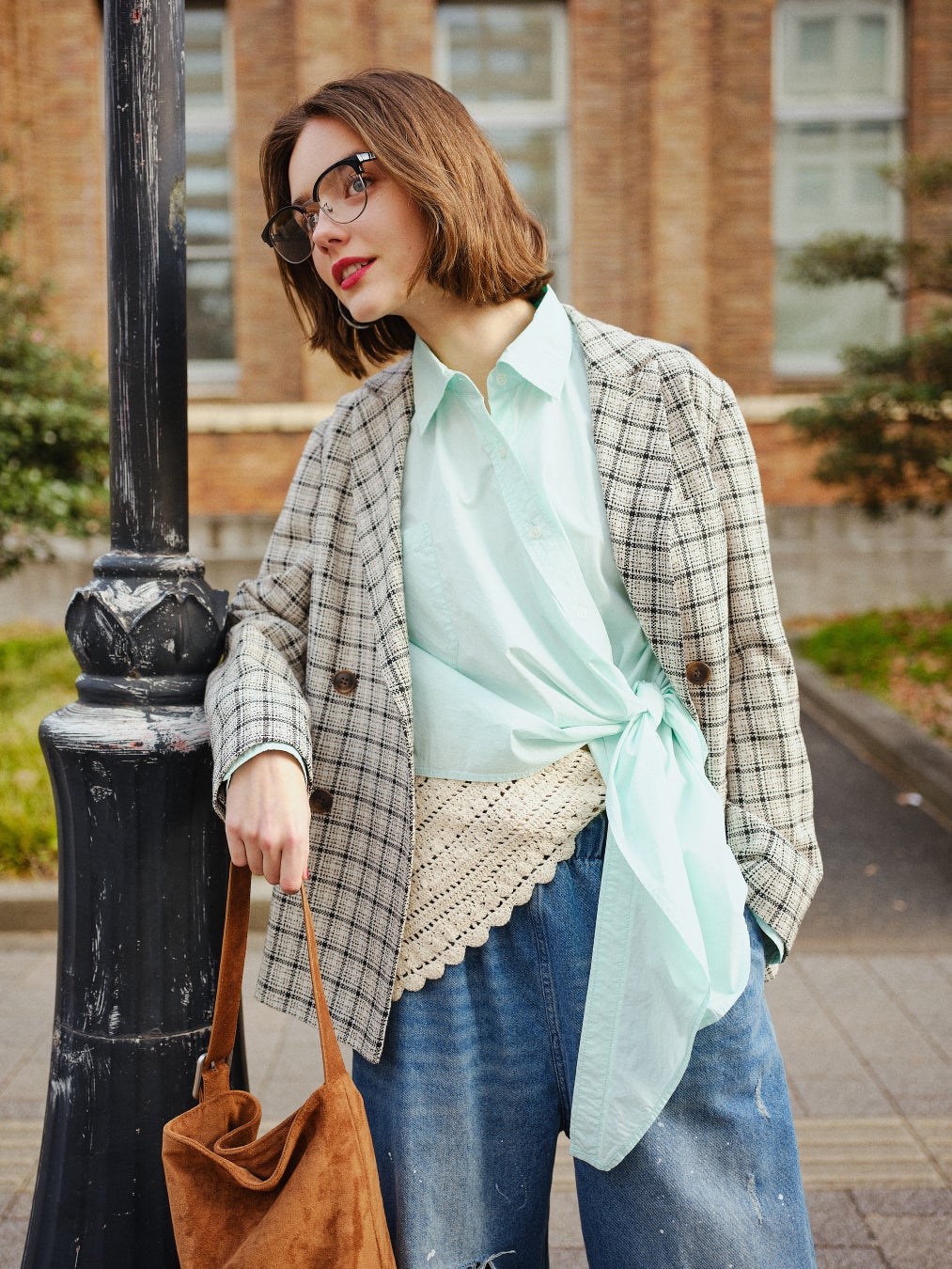 ヴィンテージライクな風合いとトレンドの短丈シルエットがマッチしたブラウス。
