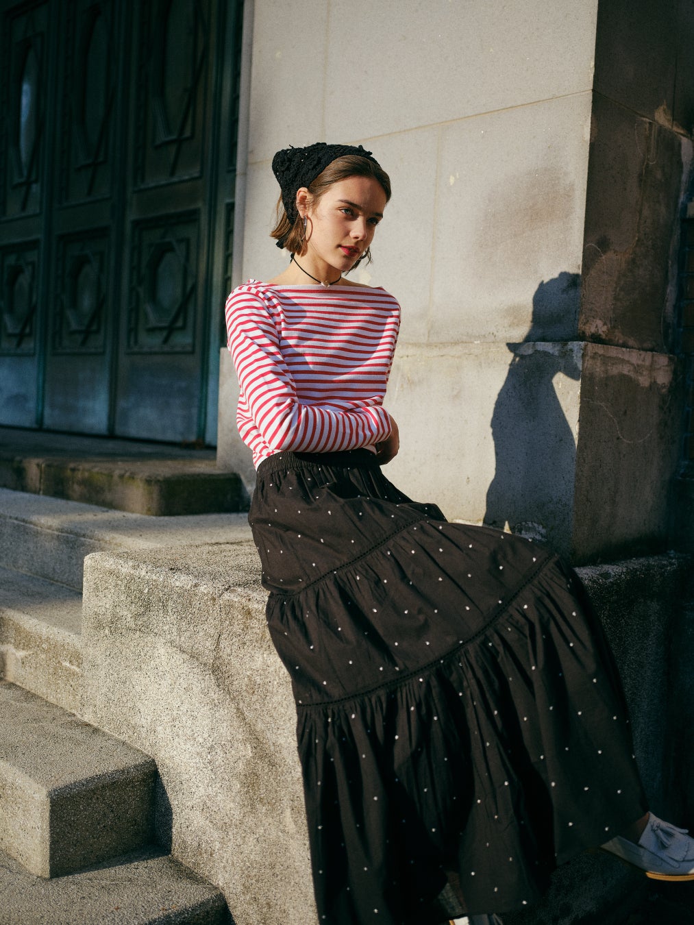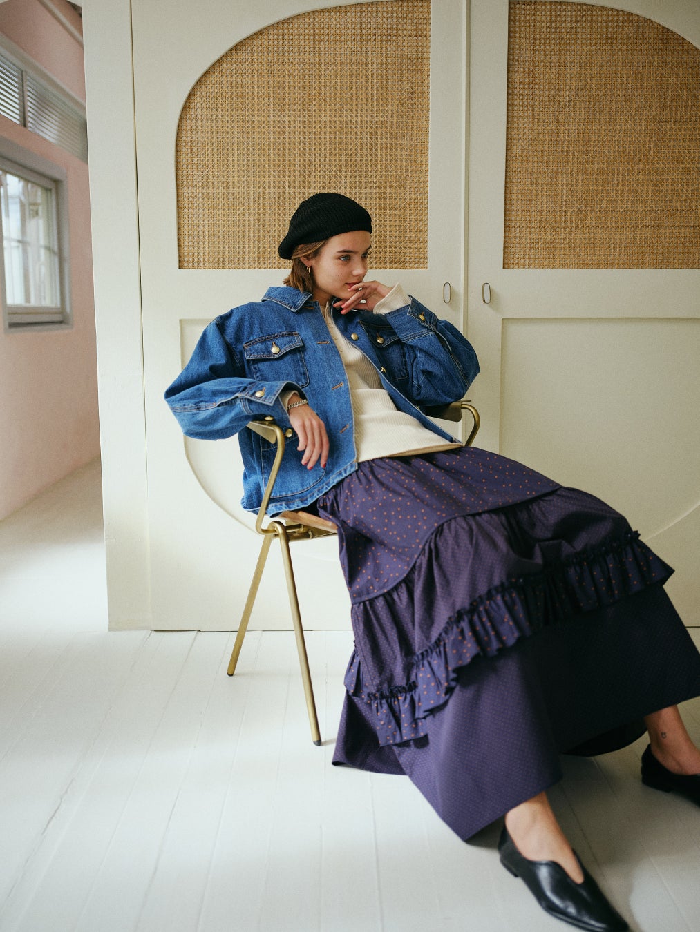 スカート:ドットコンビ ティアードスカート ¥7,997(税込)