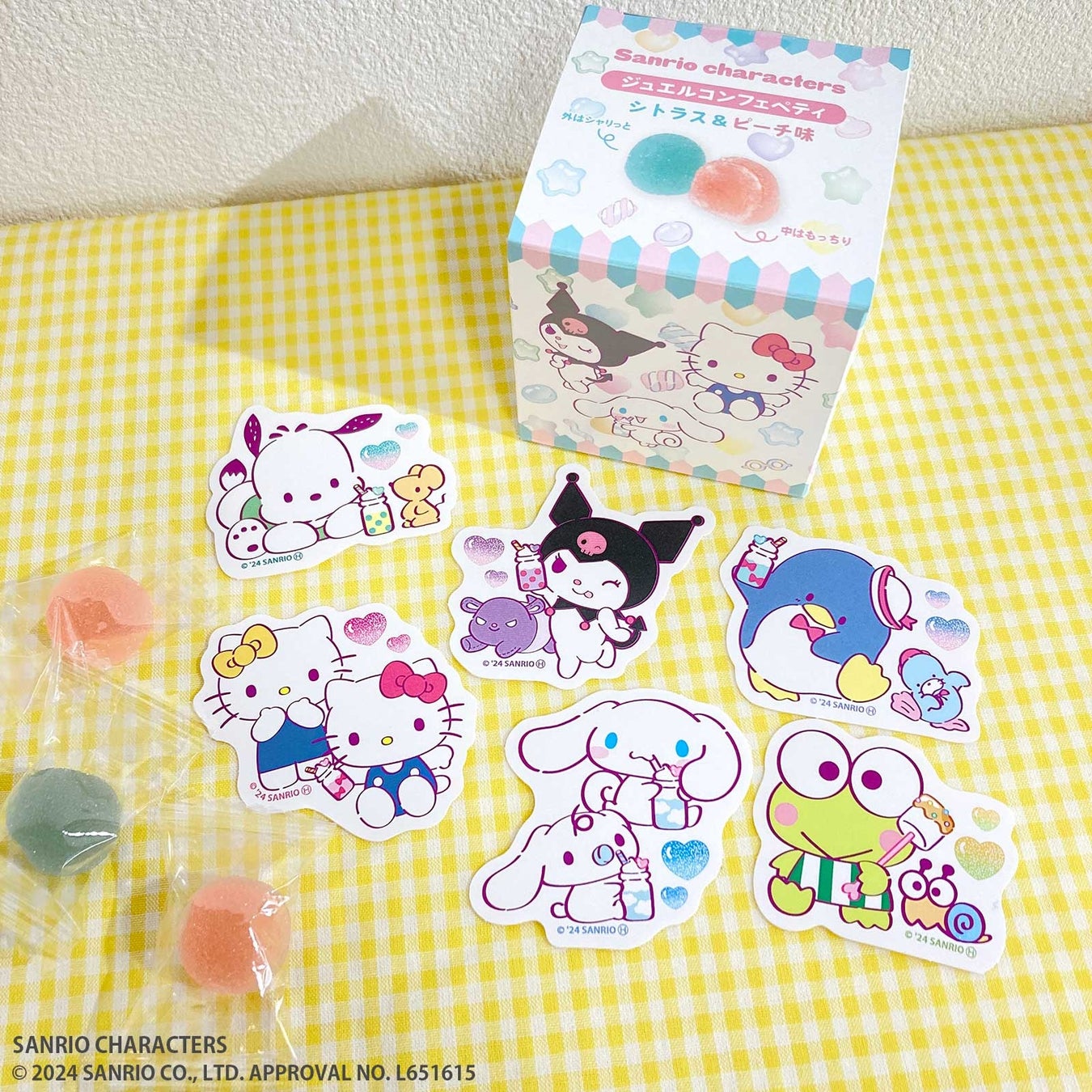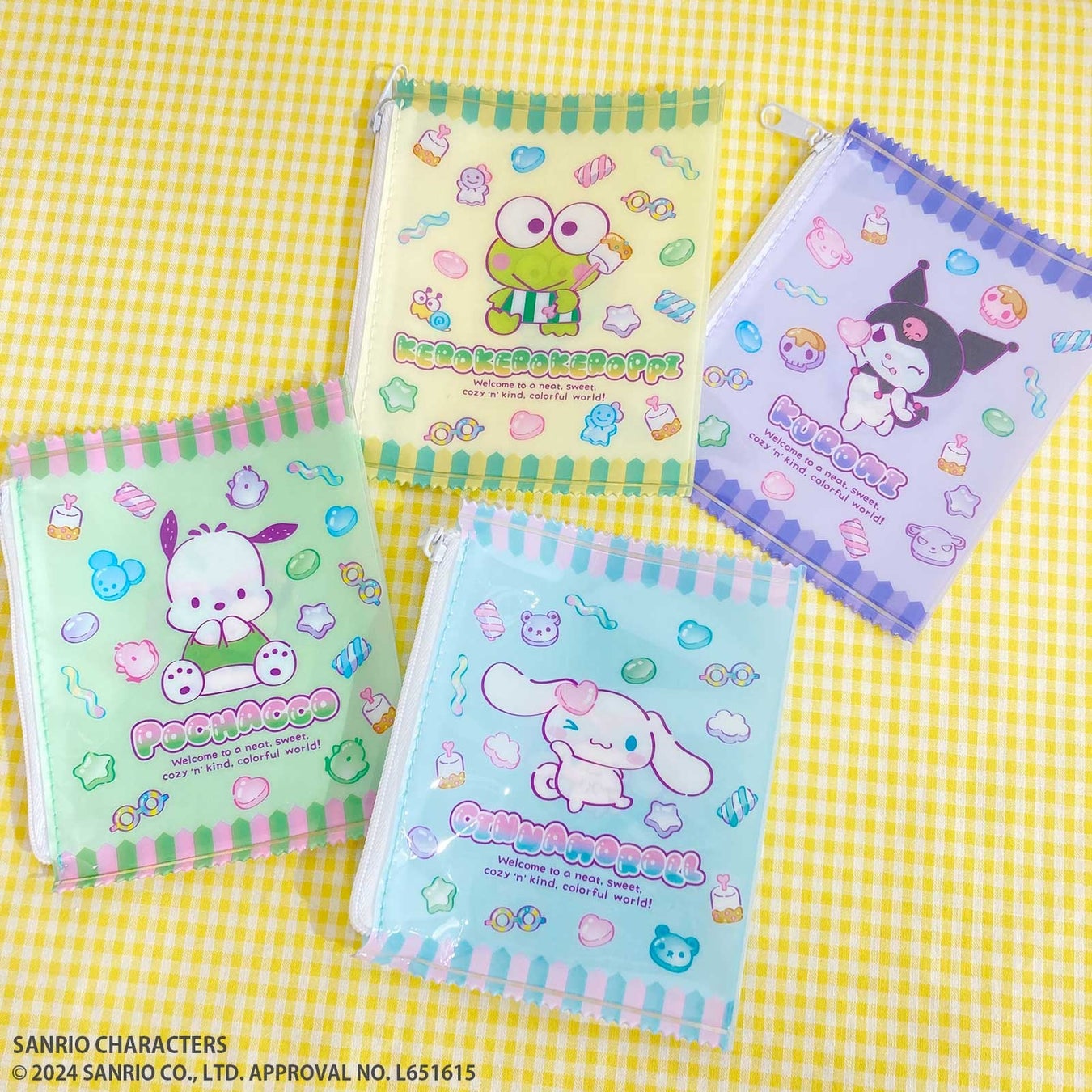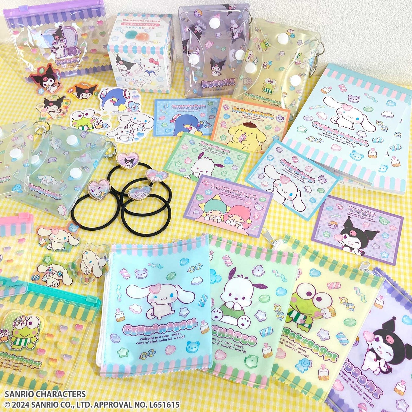今回は、サンリオキャラクターズが甘くてやわらかいマシュマロとグミに囲まれた、お菓子パッケージのようなデザインアイテムを展開します。カラフルでポップな世界観に元気をもらえる、キュートなデザインです。