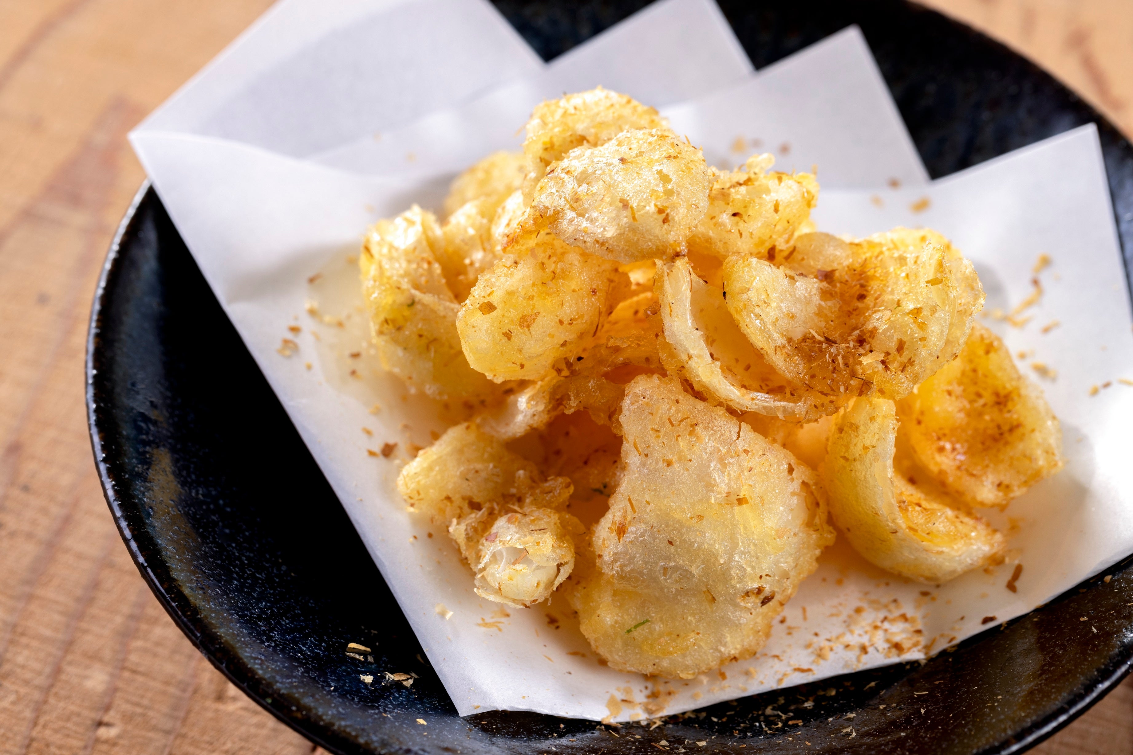 北海道の海で獲れる「オホーツクホンヤドカリ」を丸ごとからっと唐揚げにしました。