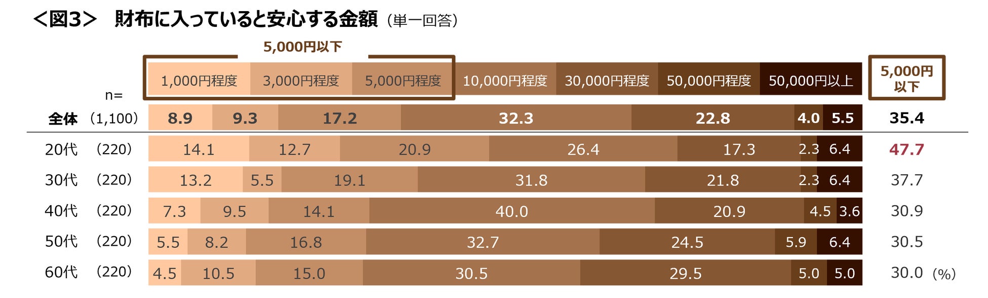 20代は半数近くが「5,000円以下」でも安心と回答。<図3>