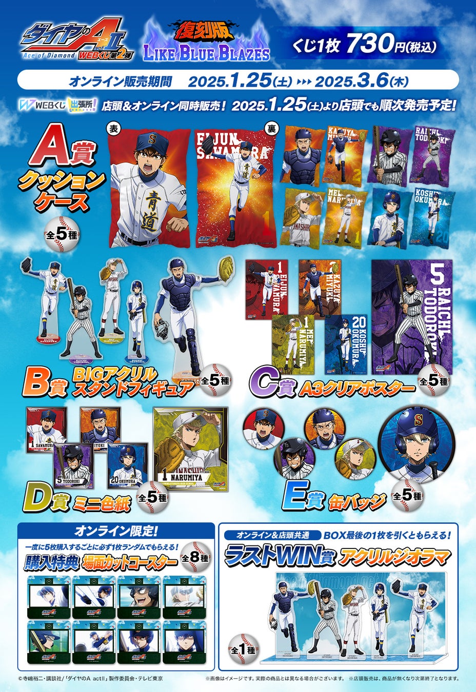 株式会社ディ・テクノ(本社:東京都中央区 代表取締役社長:市原高明)は2025年1月25日(土)より、「【復刻版】ダイヤのA actⅡ WEBくじ第2弾 ~LIKE BLUE BLAZES~」の販売を開始いたしました。