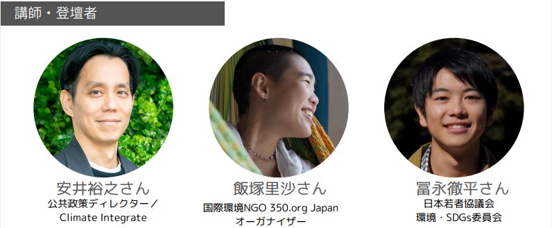 解説を受け、気候変動危機を訴える若者2人が登壇し、市民による政策参加の在り方を安井さんと話し合います。多様な世代やジェンダー、価値観を基にした立場から、普段の暮らしに大きく影響するエネルギー政策の論議に参加できる枠組みを考えます。参加者は、事前に登壇者への質問やメッセージを伝えることができ、イベントで3人が答えます。