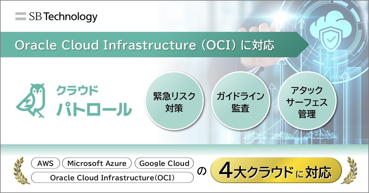 SBテクノロジー株式会社(本社:東京都新宿区、代表取締役社長 CEO:阿多 親市、以下SBT)は、SBTが開発・提供するCSPM/ASMサービス「クラウドパトロール」において、2025年11月12日よりOracle Cloud Infrastructure (OCI) への対応を開始しました。