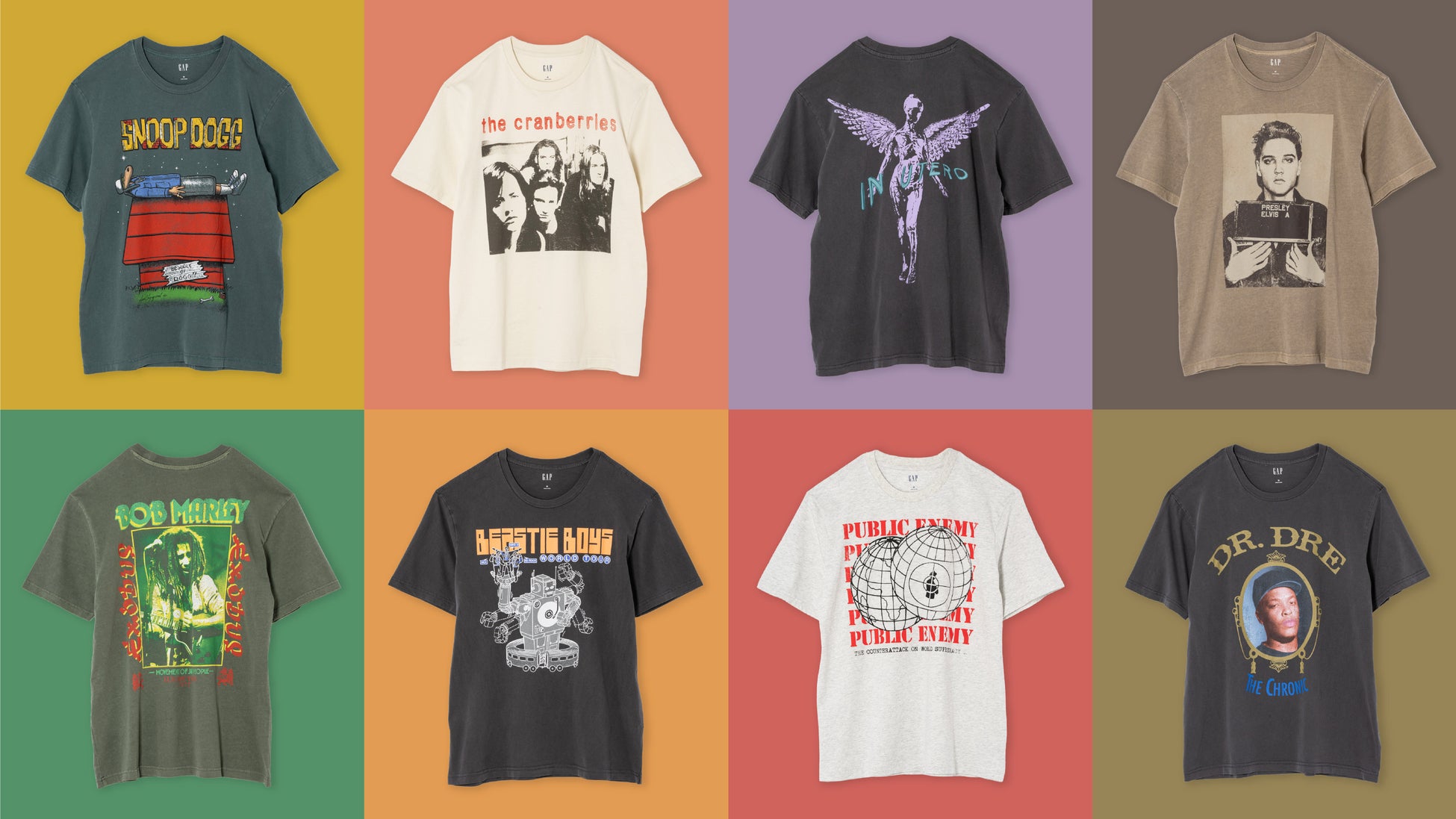 ロック、レゲェ、ヒップホップなど様々なジャンルのアーティストが並ぶGapのミュージックTシャツコレクションを是非お楽しみください。