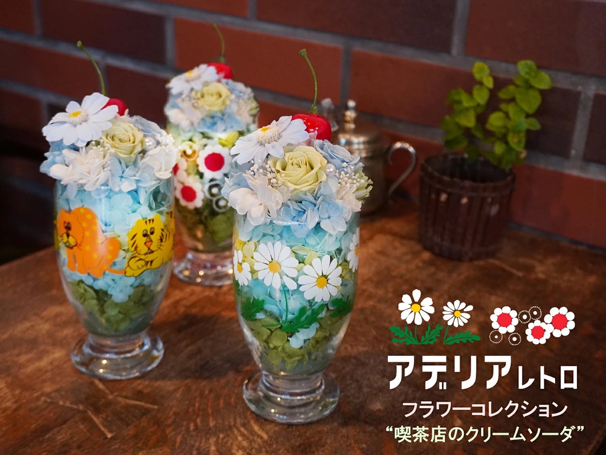 ※「アデリアレトロ フラワーコレクション『喫茶店のクリームソーダ』」は兵庫県西宮市の「マイペリドットカフェ」(兵庫県西宮市仁川町2-3-6)でも実物がご覧いただけます。