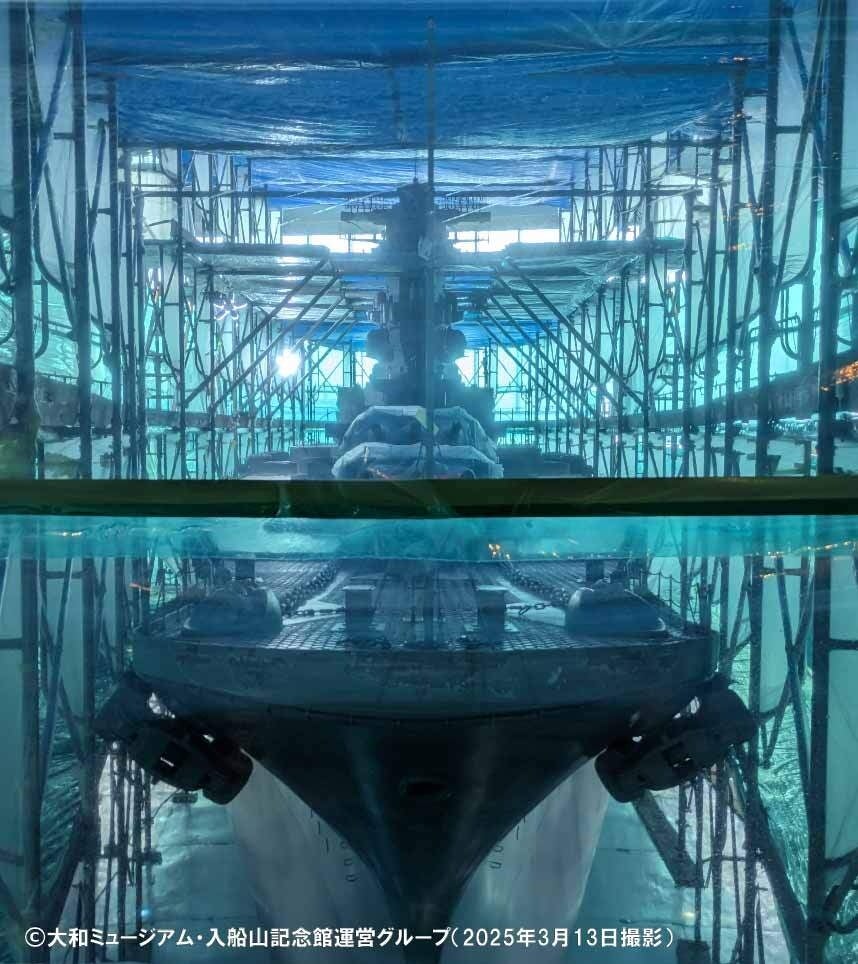 呉市海事歴史科学館(大和ミュージアム、広島県呉市宝町)は、現在、リニューアル工事のため令和8年3月末まで休館しています。リニューアルに伴って、当館のシンボルである10分の1戦艦「大和」も改修を行い、平成28年に実施した呉市潜水調査の結果をふまえた、より「史実に近い」姿を再現します。
