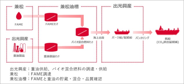 出光興産株式会社(本社:東京都千代田区、代表取締役社長:酒井則明、以下「当社」)は、兼松株式会社(本社:東京都千代田区、代表取締役社長:宮部佳也、以下「兼松」)と協業し、国内石油元売りとして初めて※1、外航船舶向けに重油とFAME※2を混合したバイオ混合燃料の供給(以下「本取り組み」)を開始しました。本取り組みでは、兼松油槽株式会社(兼松グループ会社、以下「兼松油槽」)の海上出荷設備を活用し、バイオ混合燃料の供給体制を構築します。当社は川崎汽船株式会社などの海運会社に対して供給を開始しており、2026年3月までに内航船舶向け含め、合計5,000トン※3のバイオ混合燃料の供給を目指します。これにより、海運業界の脱炭素化に貢献します。