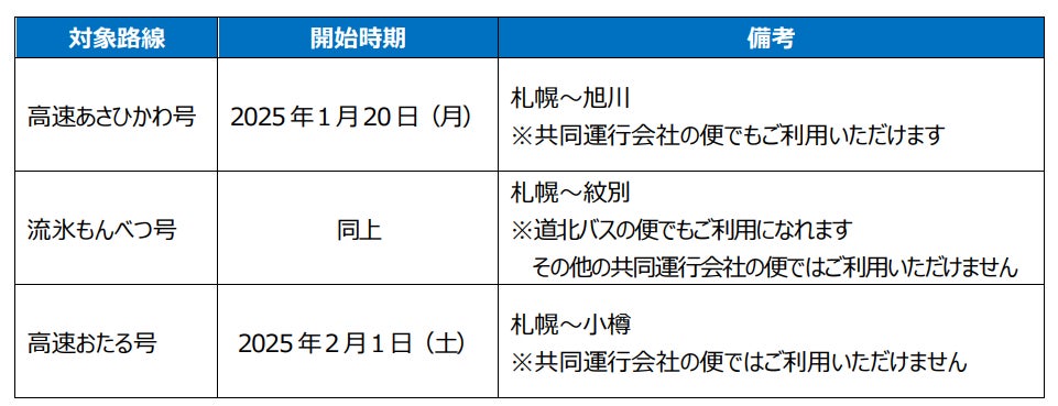 ~高速あさひかわ号・流氷もんべつ号・高速おたる号でサービス開始予定~