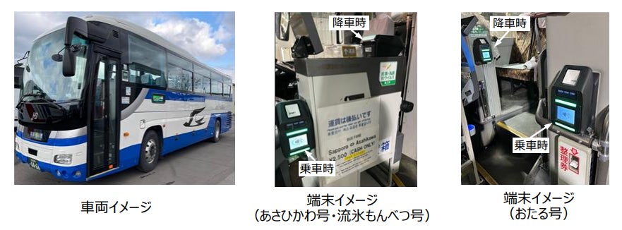 ジェイ・アール北海道バス株式会社(本社:北海道札幌市、代表取締役社長:田畑 正信)、 三井住友カード株式会社(本社:東京都江東区、代表取締役社長:大西 幸彦)、株式会社ジェーシービー(本社:東京都港区、代表取締役兼執行役員社長:二重 孝好)、北海道アトラス株式会社(本社:北海道札幌市、代表取締役社長:川西 哲也)、株式会社小田原機器(本社: 神奈川県小田原市、代表取締役:丸山 明義)、QUADRAC株式会社(本社:東京都港区、代表取締役社長:高田 昌幸)は、ジェイ・アール北海道バスが運行する高速あさひかわ号、流氷もんべつ号、および、高速おたる号で三井住友カードが提供する公共交通機関向けソリューション「stera(ステラ) transit(トランジット)」を 活用したタッチ決済対応のカード(クレジット・デビット・プリペイド)や、カードが設定されたスマートフォン等による乗車サービスを開始することについて、以下の通りお知らせします。