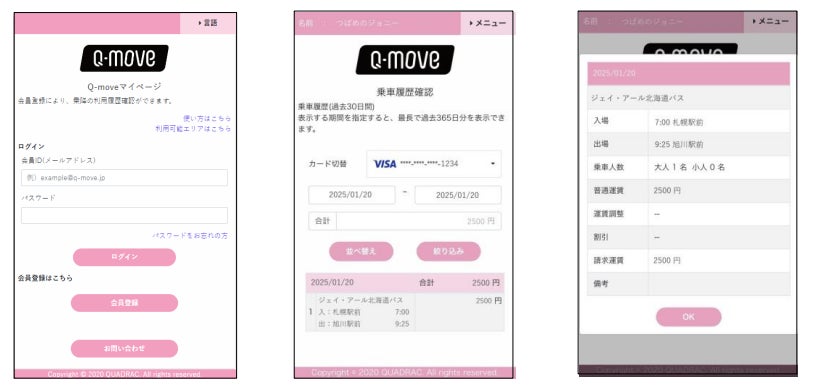 QUADRACのQ-moveサイトにアクセスし、「マイページ」の会員登録手続きが完了しますと確認可能です。