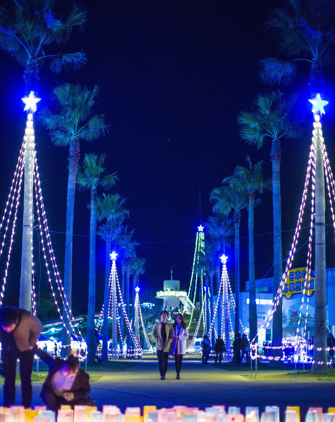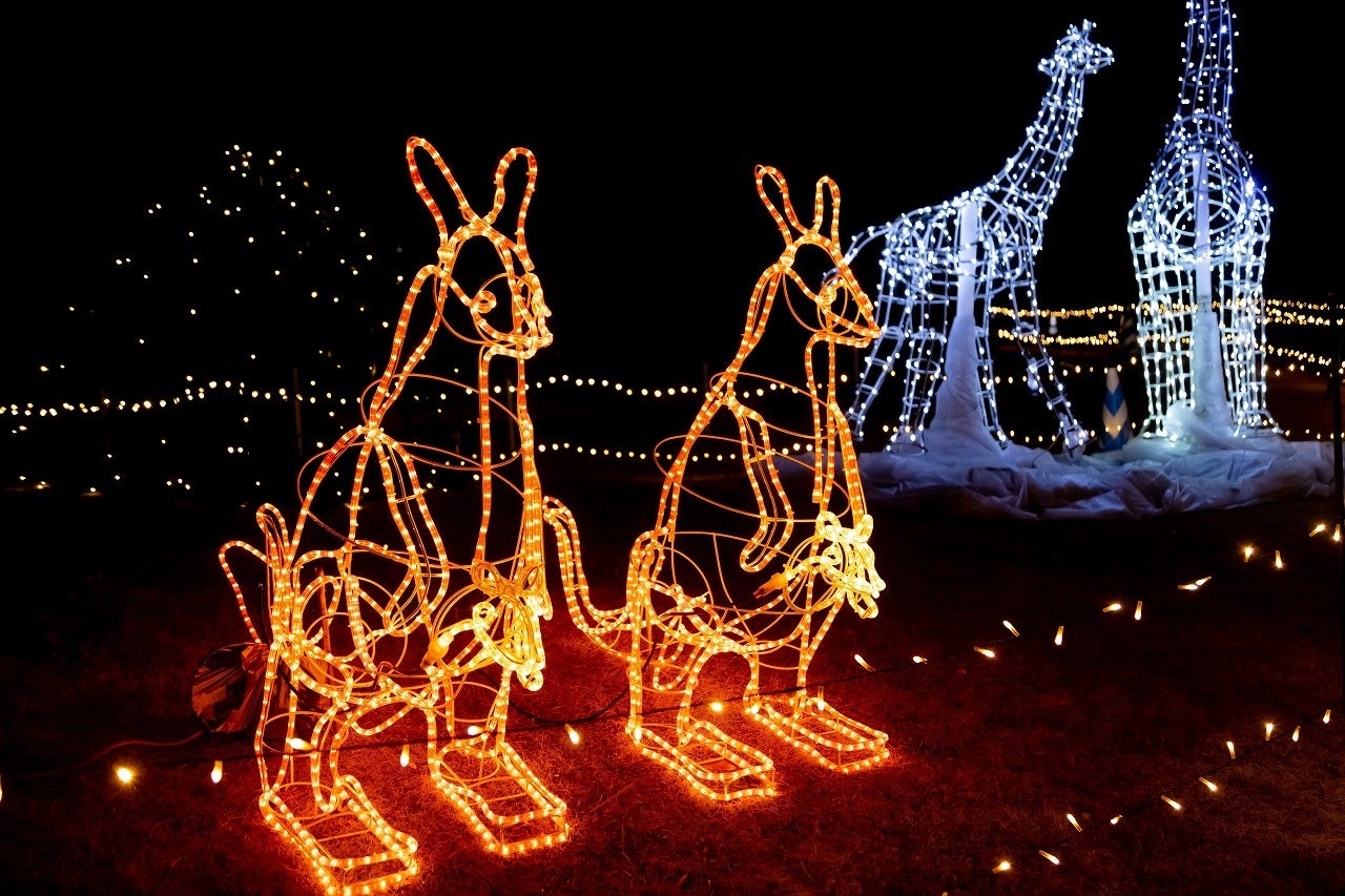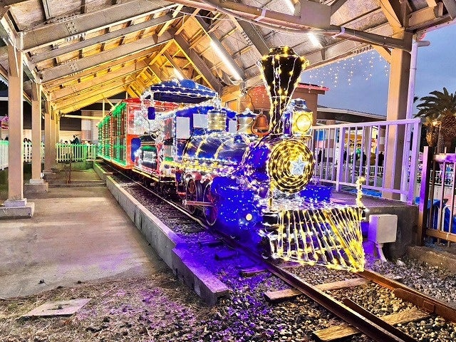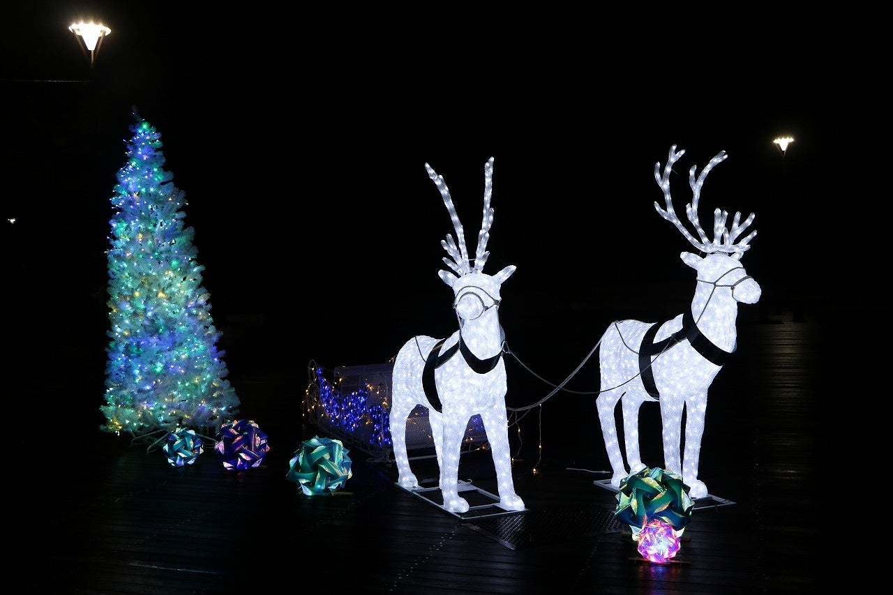 流れ星や動物のイルミネーション、七色に輝くシャボン玉やヤシの木などが登場し、賑やかに彩ります。