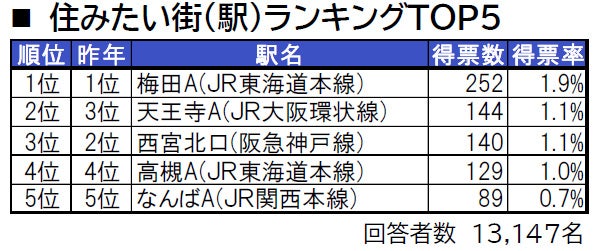 •住みたい街ランキングでは、行政区はまとめて一つの自治体として集計していますが、大阪市・京都市・神戸市・堺市は行政区を分けて集計しています。