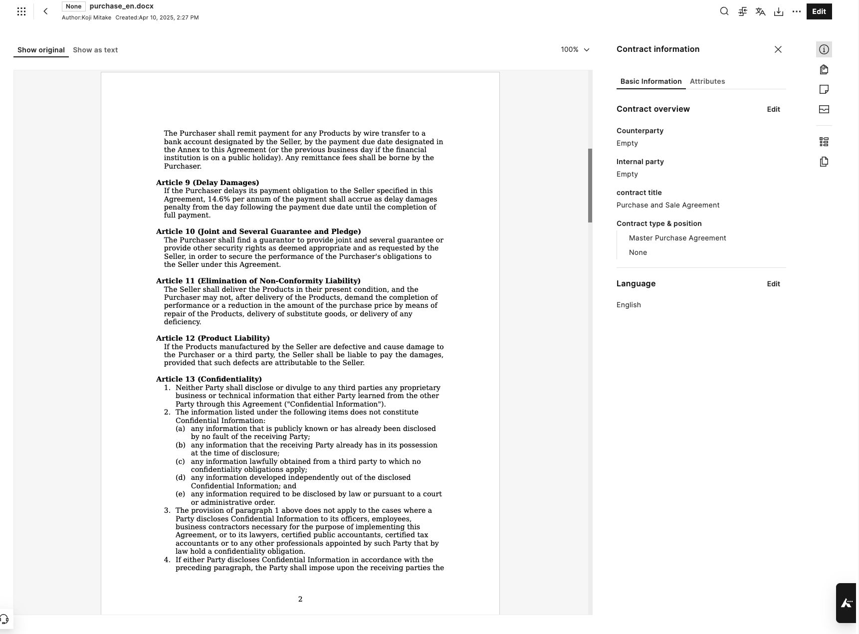 ~日本語だけでなく、英語での契約・法務業務をAIでサポートし、UIも国際対応~