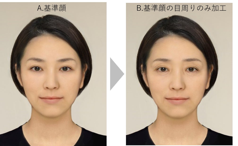 B.加齢による目周りの変化を再現し、合成した画像:評価平均年齢46.5歳