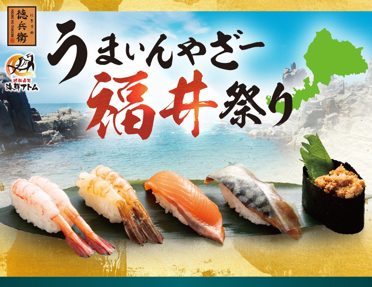 コロワイドグループの株式会社アトム(本社:神奈川県横浜市 代表取締役社長:植田剛史)が展開する回転寿司業態の「にぎりの徳兵衛」「海鮮アトム」の各店で、2025年10月1日(水)から「うまいんやざー福井祭り」を期間限定で実施いたします。