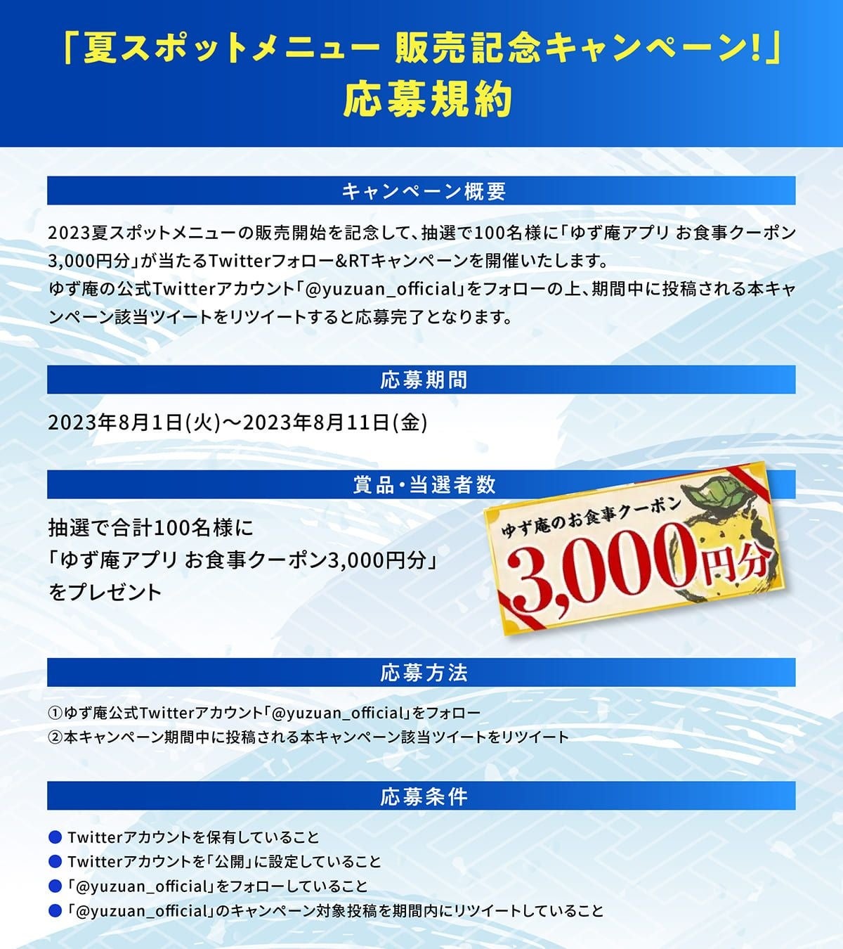 【ゆず庵】お食事券が当たる!夏のフォロー&リツイートキャンペーン開催