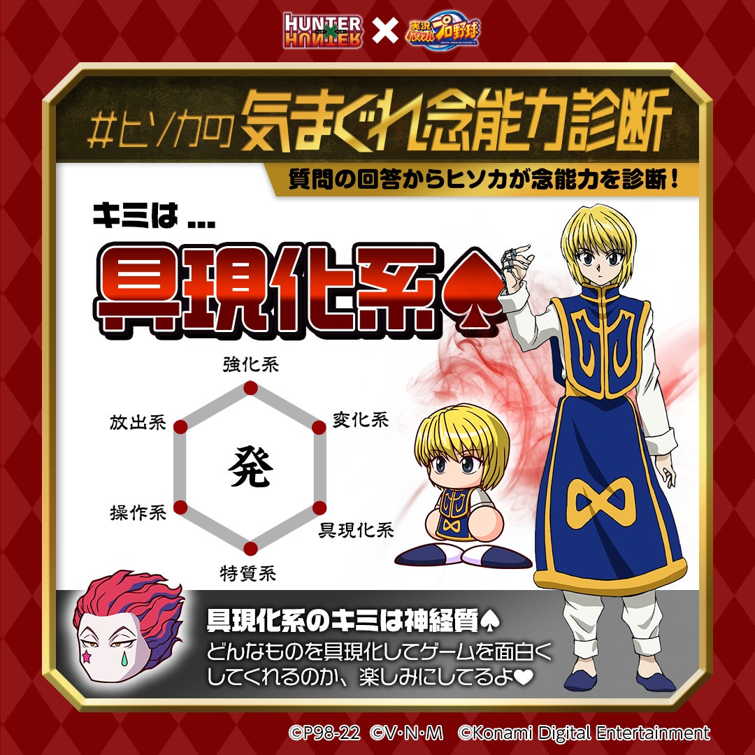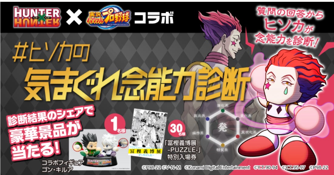 - Twitterで「#ヒソカの気まぐれ念能力診断CP」開催!