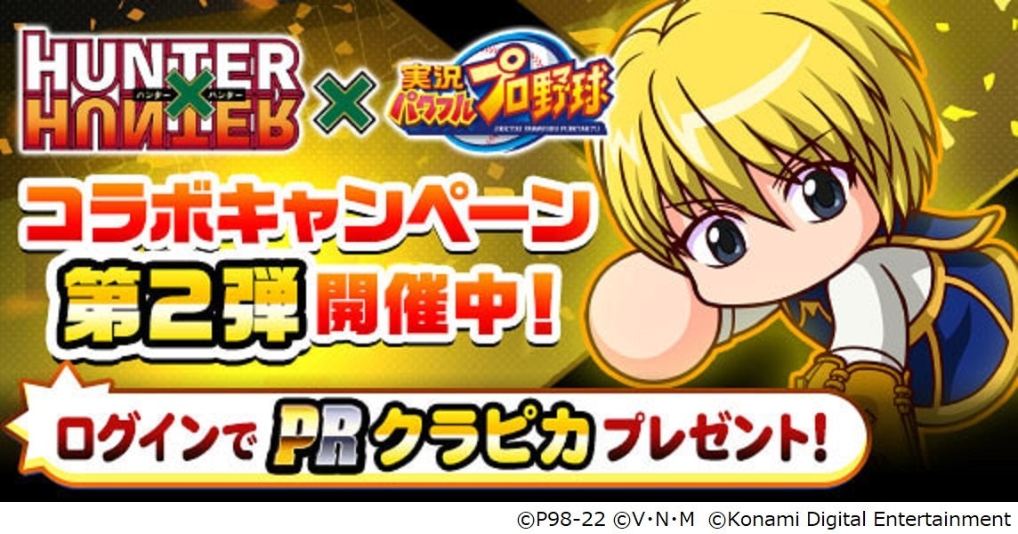 株式会社コナミデジタルエンタテインメントは、人気アニメ「HUNTER×HUNTER」とモバイルゲーム『実況パワフルプロ野球』(以下、『パワプロアプリ』)のコラボレーション第2弾が本日9月26日(月)14時よりスタートすることをお知らせします。