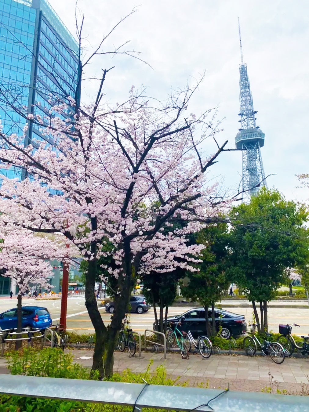名古屋久屋大通公園の桜が咲くとエロイーズカフェのテラス席から最高の眺めとなっております。