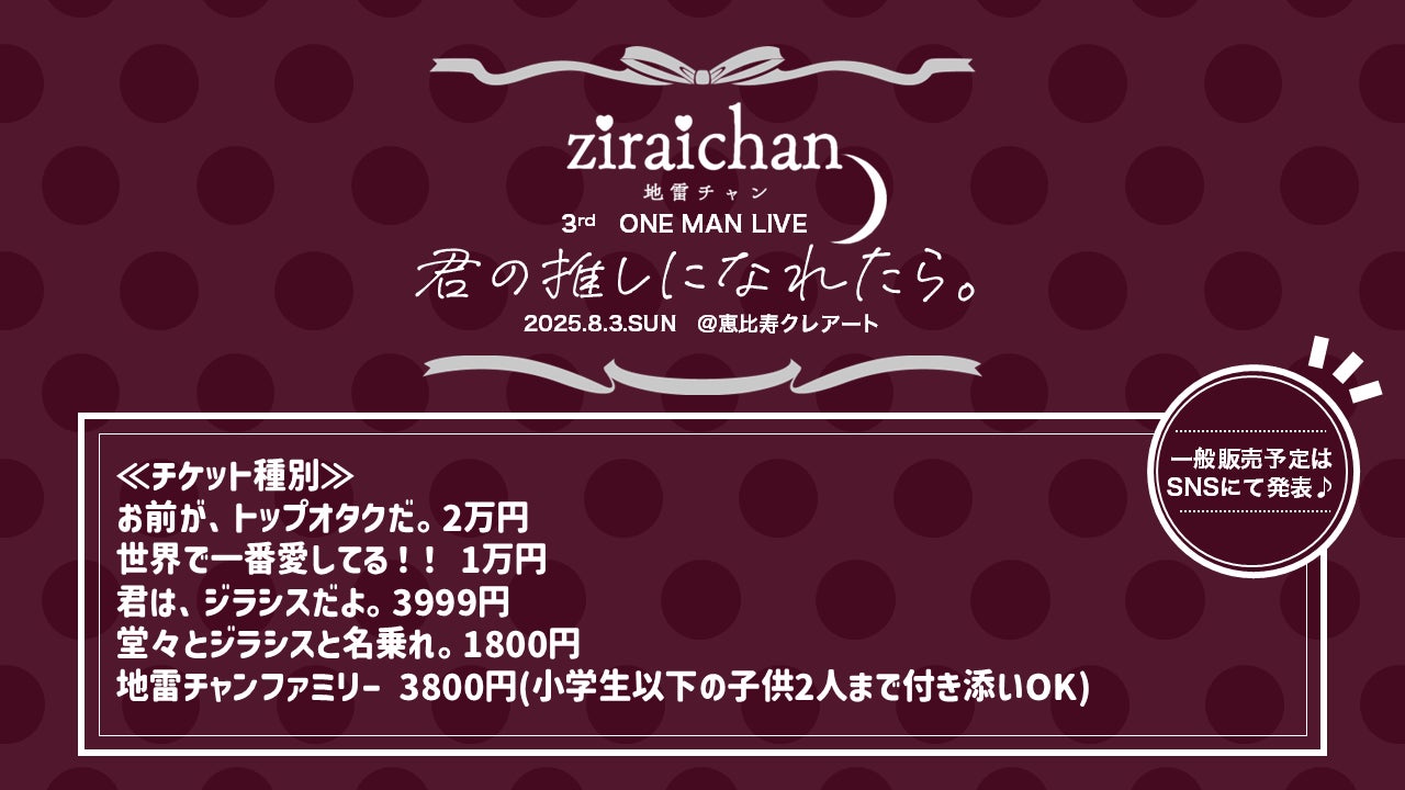 推し活系インフルエンサー「地雷チャン」、 3rd One Man Live「君の推しになれたら。」が開催決定! さらに佐藤純一(fhána)プロデュースによる新曲制作が決定。