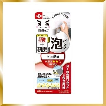ガラス製の浴室鏡に使用可能。5分間のクエン酸の泡パックでウロコを溶かして、研磨剤シートでこすって洗い流すだけお手入れが完了します。