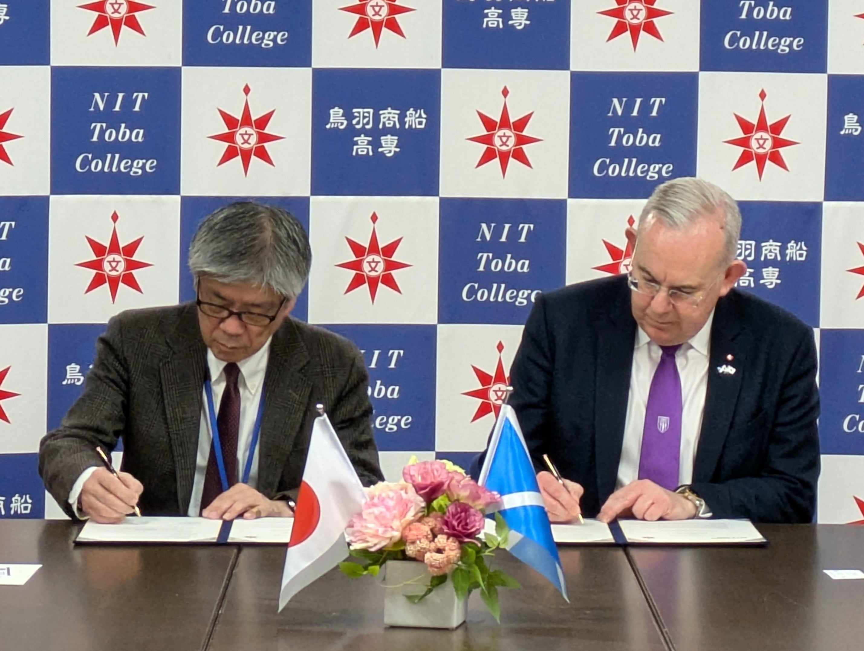 鳥羽商船高等専門学校(三重県鳥羽市、校長:古山雄一、以下「鳥羽商船高専」)は、令和7年12月3日(水)、英国スコットランド最大の技術教育機関であるCity of Glasgow College(英国スコットランド、学長兼最高責任者:ポール リトル、以下「グラスゴー市立大学」)と海事教育分野における学術交流を目的としたMemorandum of Understanding(以下「MOU」)を締結しました。