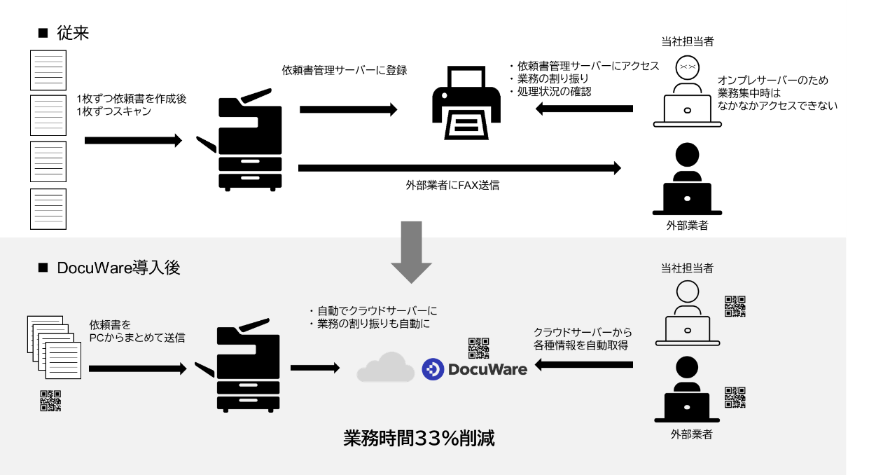 2023年2月よりDocuWareを導入したことで、以前よりもデータへのアクセス時間が大幅に短縮されただけでなく、QRコードによる業務フローの管理により、業務の効率化に繋がる結果となっています。