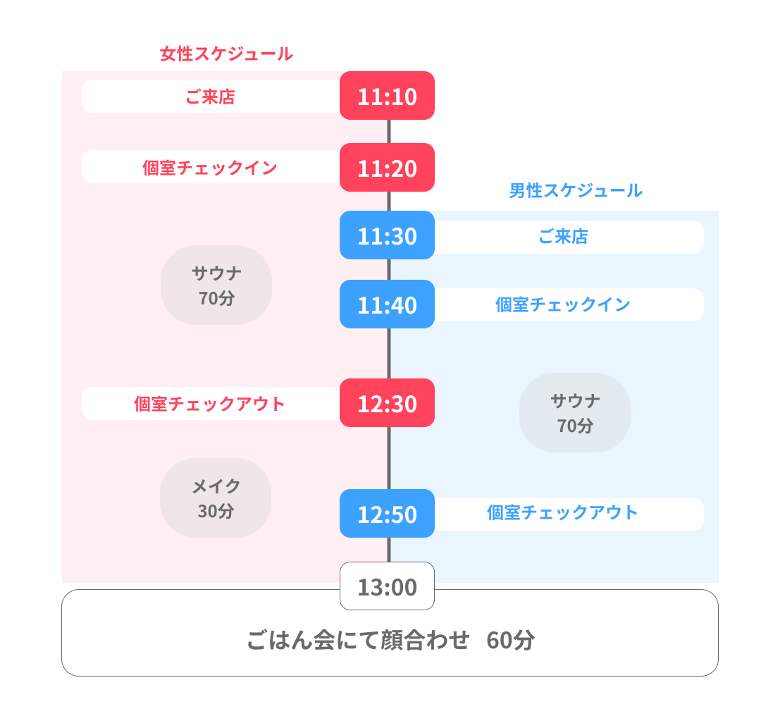 趣味を通じて異性と出会うことができ、さらに女性がメイク直しなどの不安をかかえずに参加できるサウナ婚活を企画。サウナ後の「心がリラックスした状態」でお相手に会うことで、普段よりも深いお話ができるかもしれません。