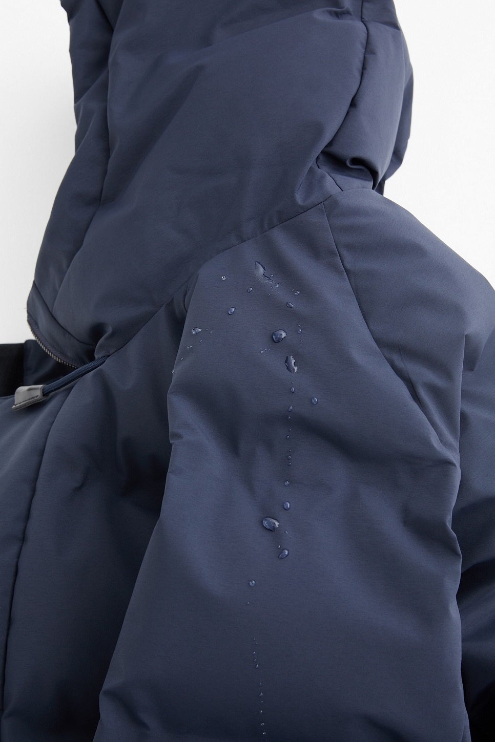 縫製部分から水が染み込まないようミシンの縫い目のない「熱圧着」という無縫製技術によりダウンを仕切っています。