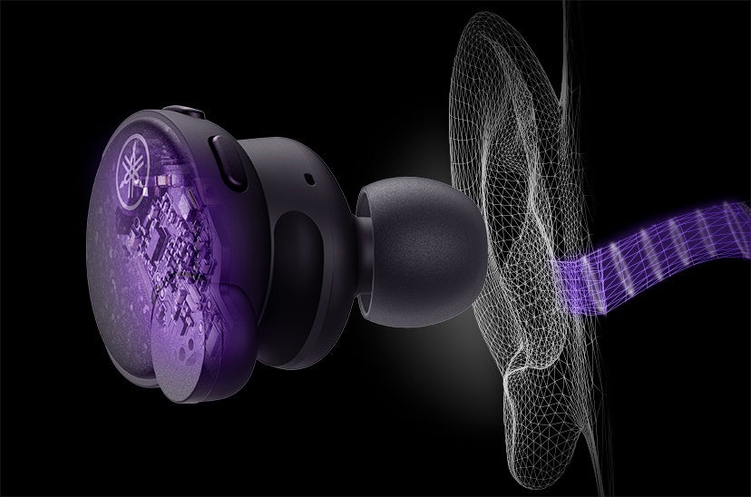 「TRUE SOUND」の中核を担う筐体設計においては、ヤマハならではのアコースティック技術を活かし綿密な内部設計をおこなっています。応答性に優れた振動版と大型ボイスコイルを使用した大口径10mmドライバーを採用することで、音楽的かつ豊かで余裕のある低域再生と正確な音色の描きわけを実現し、音楽の休符や立ち上がりまで忠実に再現します。さらに筐体内部は不要な振動や音の干渉が起きにくい構造とし、抜けのよい高域再生と心地のよい空間表現を実現しました。他にも、筐体のドライバー前面と背面に音響用の空気穴を設け筐体内部の空気を綿密にコントロールすることで、ドライバーユニットの性能を最大限に引き出しています。